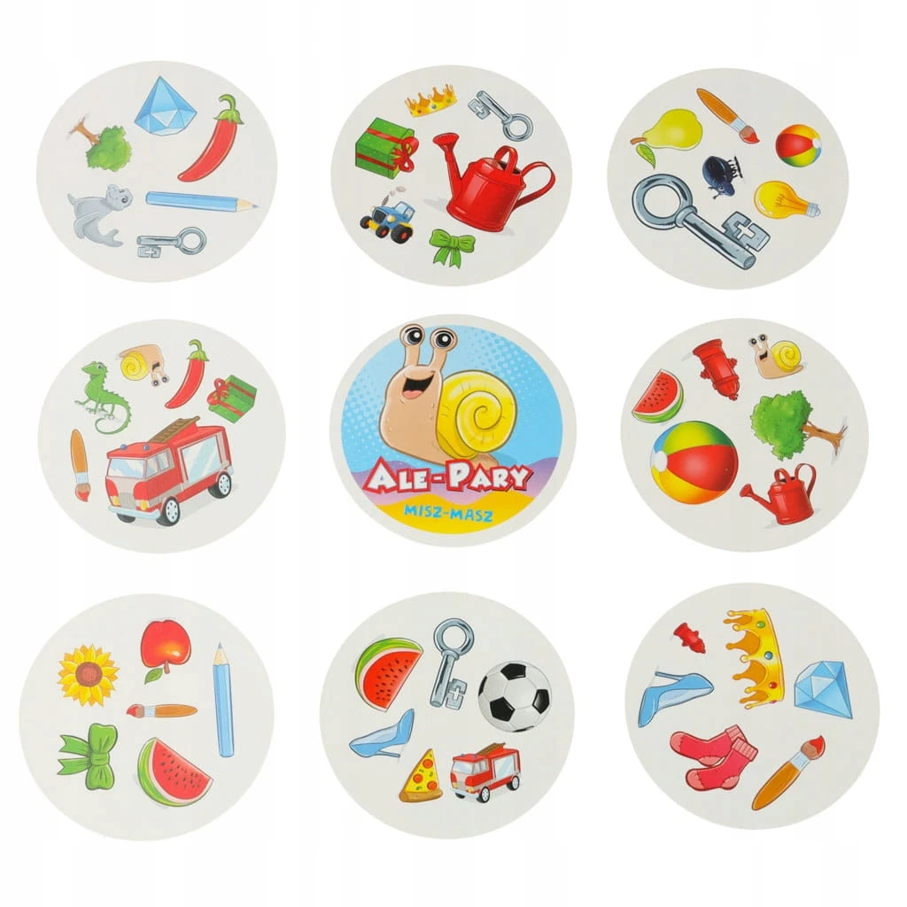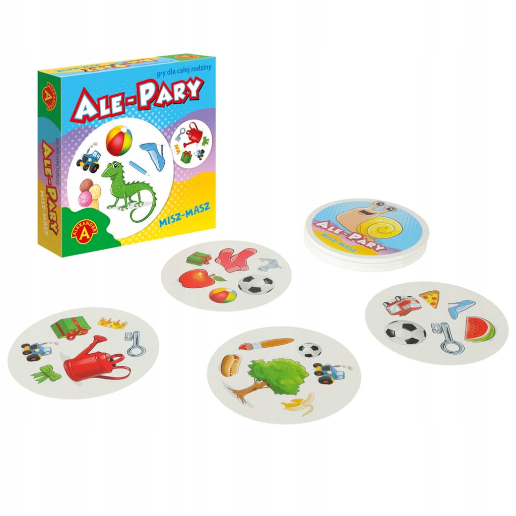 Ale Pary- Misz masz to szybka, prosta gra karciana w której wygrywa ten kto wykaże się największą spostrzegawczością. W opakowaniu znajdziemy zestaw 31 kart z 6 obrazkami na każdej z nich. Dwie dowolne karty zawsze mają po jednym wspólnym obrazku, ale żeby nie było zbyt łatwo, obrazki te często mają różną wielkość. Gra polega na jak najszybszym znalezieniu wspólnego obrazka. W zależności od wariantu wygrywa ten, kto zdobędzie najwięcej kart, bądź jak najszybciej pozbędzie się wszystkich.