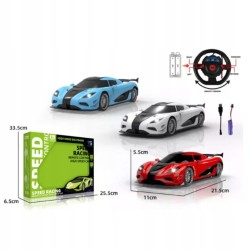 - Rodzaj zabawki: Sportowy samochód zdalnie sterowany za pomocą kierownicy.