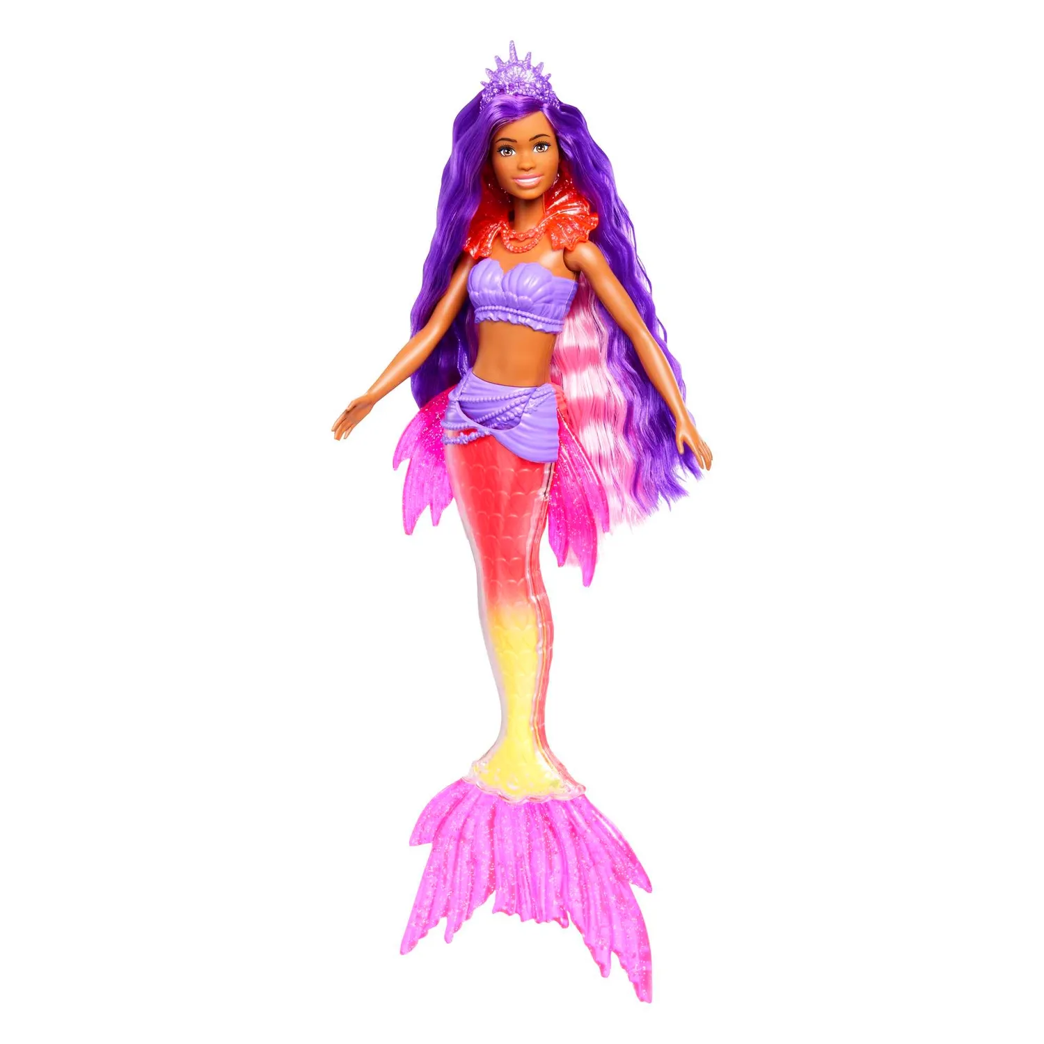 Barbie zanurza się w swojej najbardziej magicznej przygodzie w grze Barbie Mermaid Power! Lalka Barbie „Brooklyn” wygląda tak samo jak jej bohaterka ekranowa po jej wspaniałej transformacji w syrenę, z wyjątkowo długimi fantazyjnymi włosami i wyglądem pasującym do podmorskiej rodziny królewskiej. Dzięki wymiennym płetwom, naszyjnikom, tiarom i szczotki do włosów dzieci mogą zmienić swój fantazyjny wygląd na każdą przygodę!