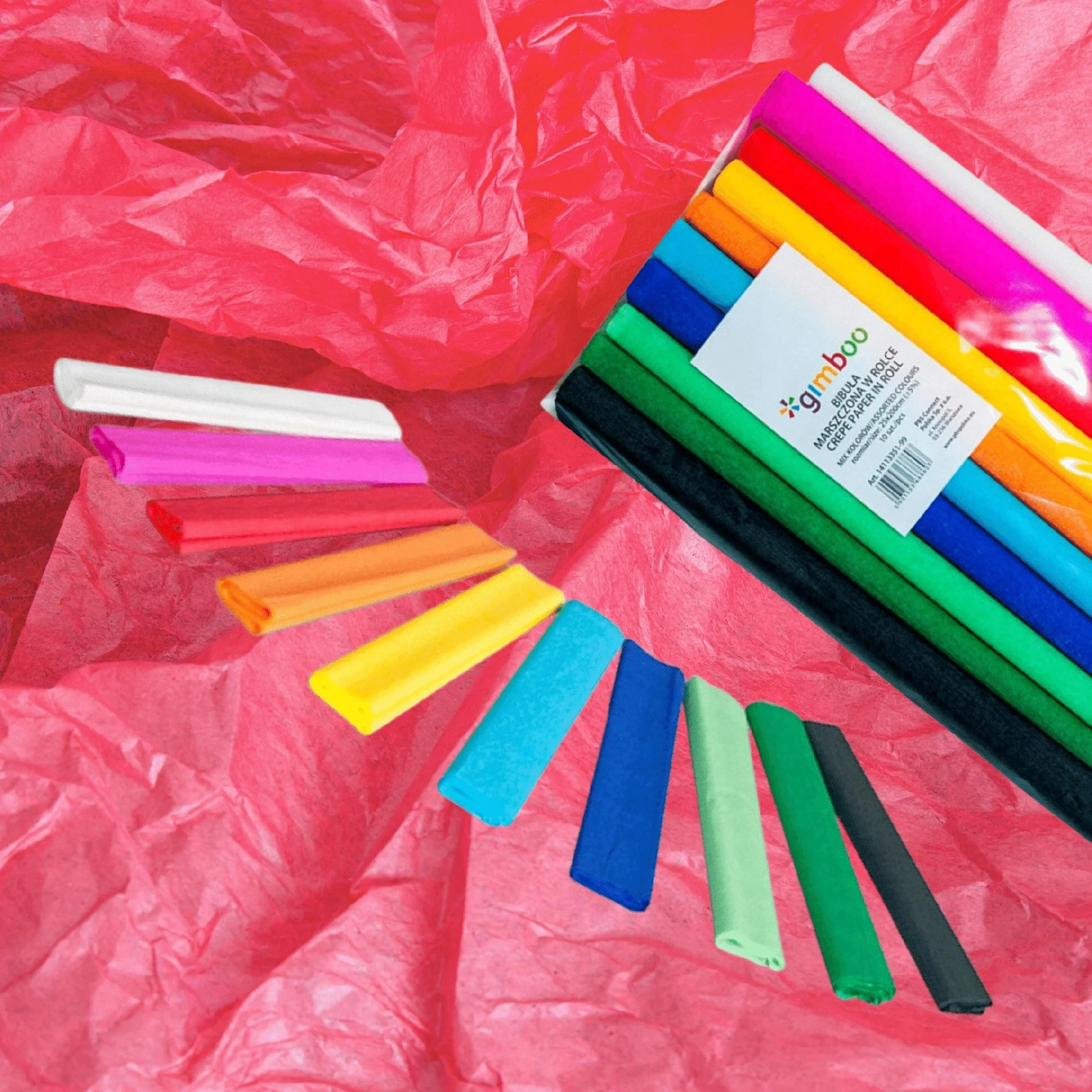 Bibuła marszczona Gimboo Wielokolorowy 25x200cm - 10szt