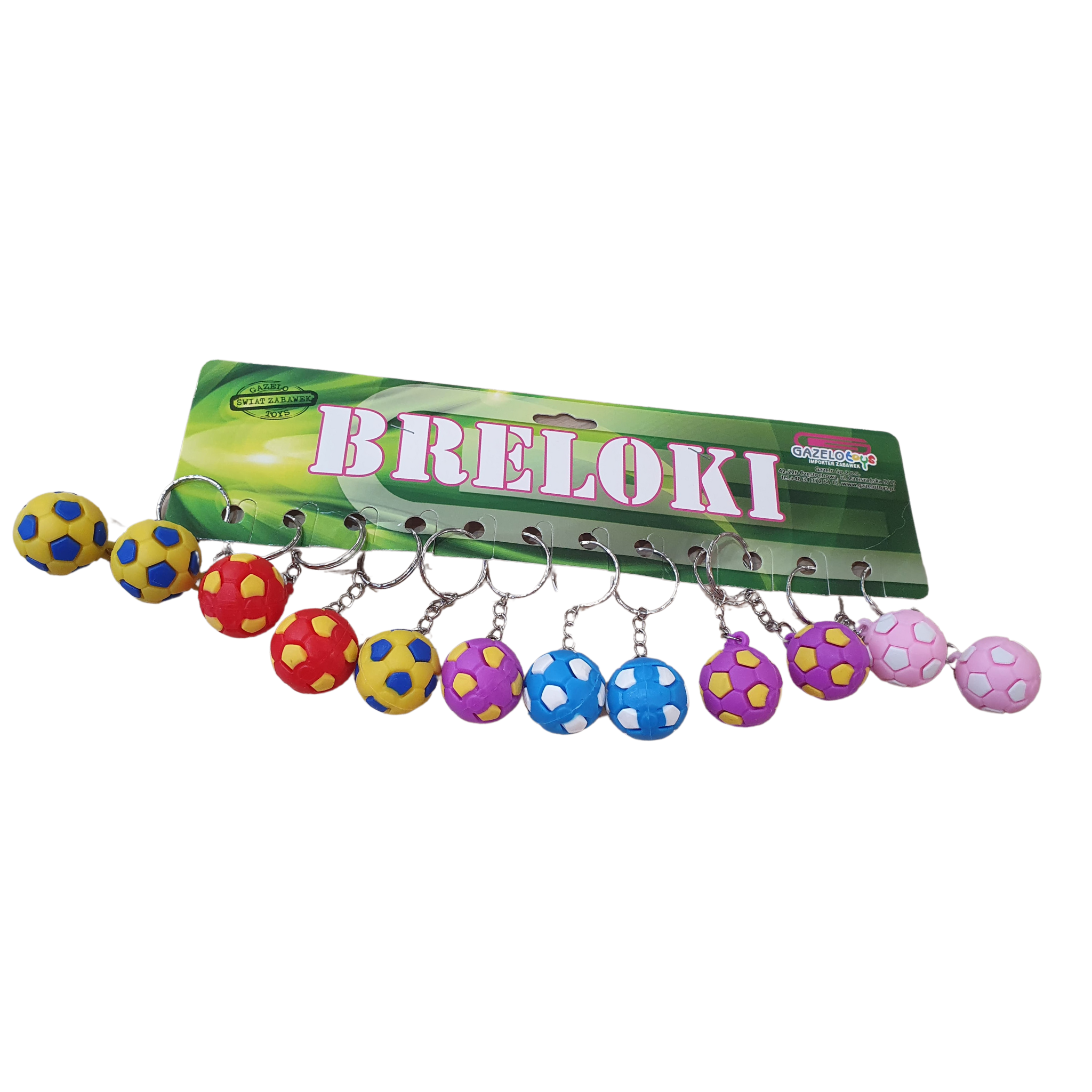 Zawieszka wykonana z tworzywa gumowego w kształcie piłki nożnej.