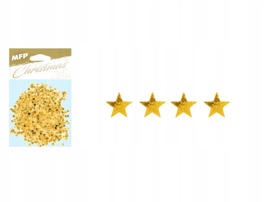 Konfetti w kształcie gwiazdek. Doskonałe do wszelkich prac kreatywnych. Dostarczane w woreczku z zawieszką. Wymiar: 100mm x 125mm x 5mm (szer. x wys. x gł.)
