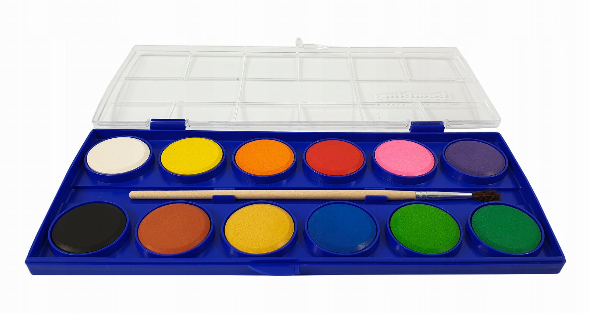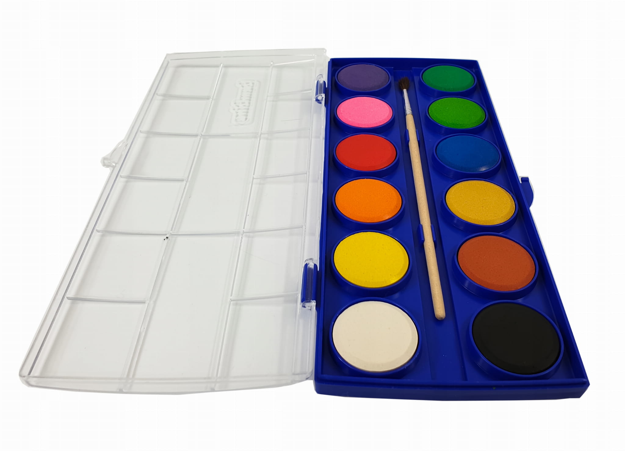 Farby akwarelowe to farby wodne podane w postaci suchych pastylek, które po zwilżeniu są gotowe do użycia.