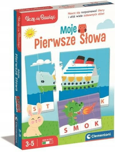 Prezent dla 3 latka, który nie tylko zapewni mu mnóstwo zabawy, ale także pomoże w nauce, to gra edukacyjna Clementoni "Uczę się bawiąc Moje pierwsze słowa". Ta kolorowa układanka składa się z 16 puzzli, stworzonych specjalnie po to, aby maluchy nauczyły się kojarzyć litery i układać pierwsze słowa.