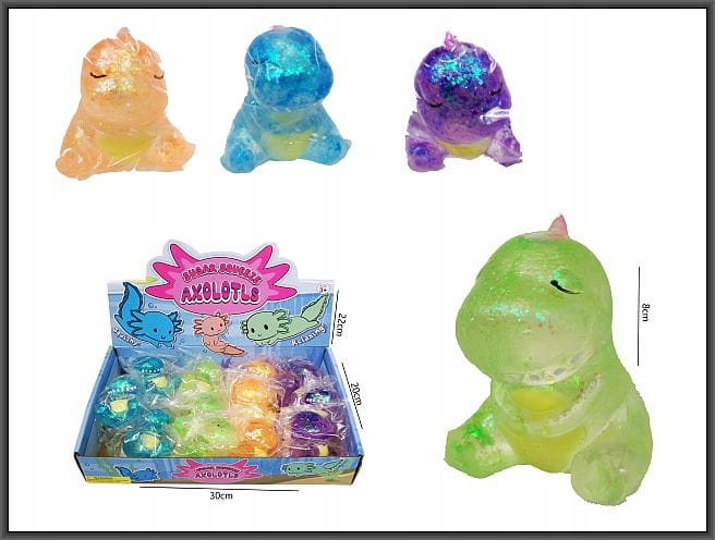 Uroczy gniotek w kształcie dinozaura z brokatem, idealny do redukcji stresu i poprawy koncentracji. Świetny dla dzieci i dorosłych!
