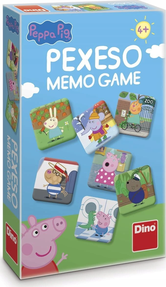 Gra pamięciowa Memo / Pexeso od Dino Toys z kolorowymi obrazkami ze Świnką Peppą i jej rodziną. Świetna do treningu pamięci, koncentracji i spostrzegawczości u dziecka.