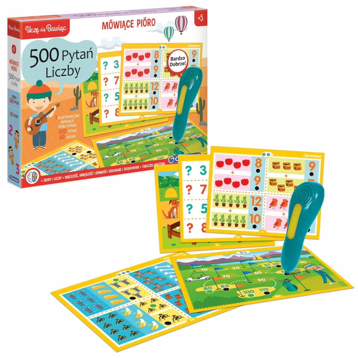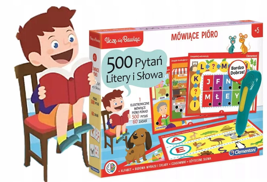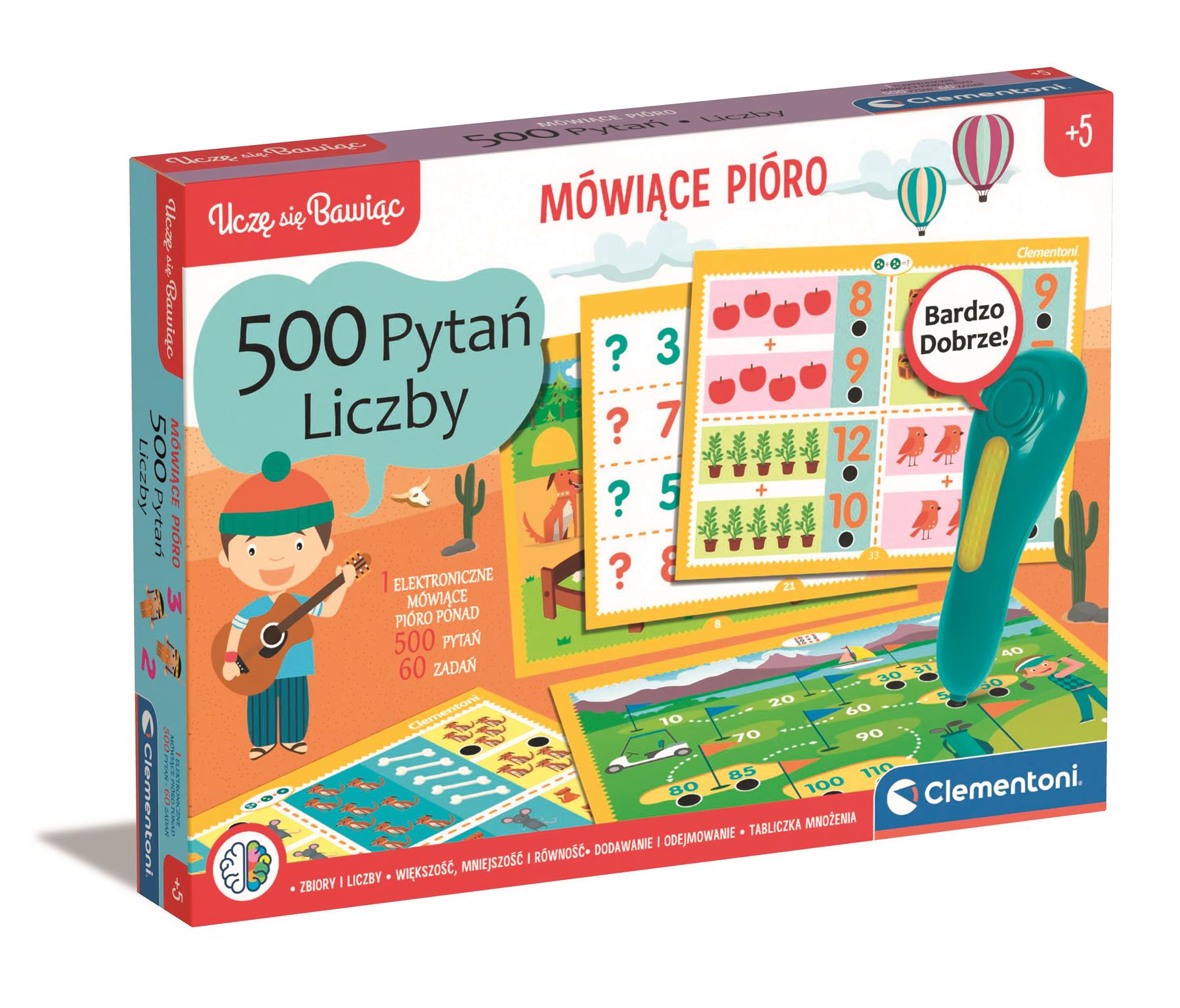 Gra planszowa Mówiące pióro 500 pytań Liczby Clementoni