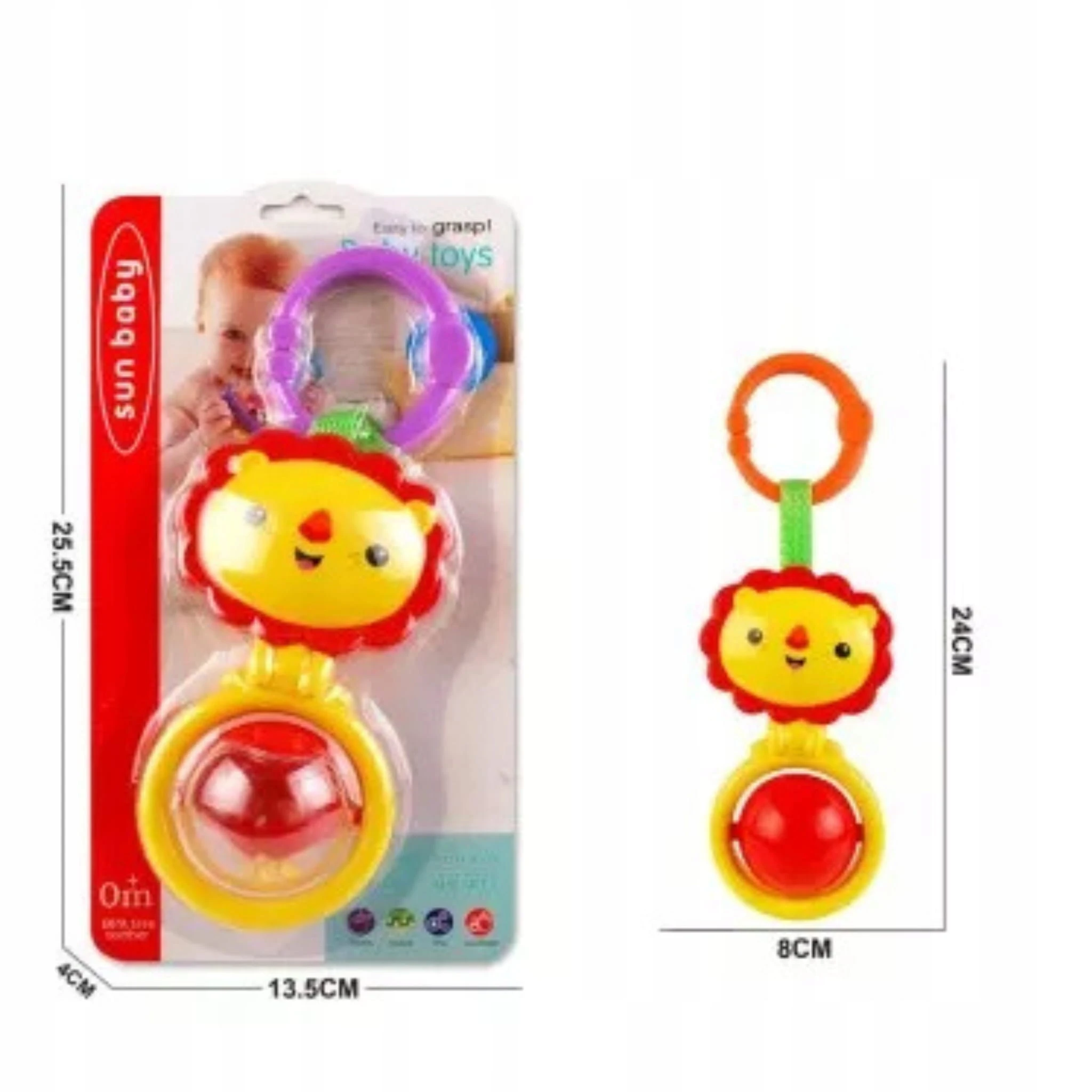 Kolorowa grzechotka w kształcie uroczego lwa z kulą to doskonała zabawka dla niemowląt. Dzięki bezpiecznym materiałom i zabawnym dźwiękom stymuluje rozwój zmysłów maluszka już od pierwszych dni życia. Grzechotka jest łatwa do uchwycenia i idealna do zabawy.