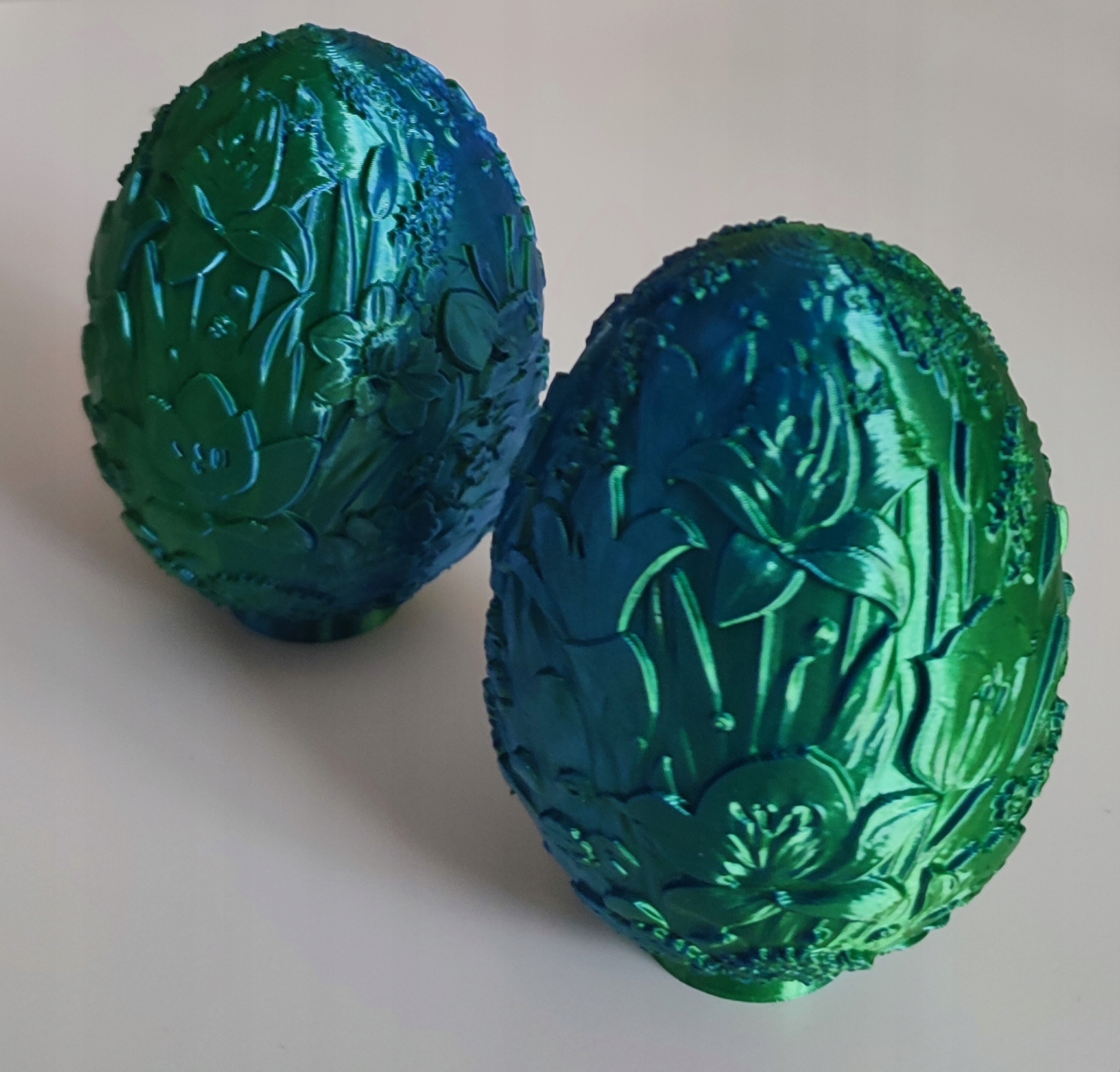 Nowoczesna ozdoba wielkanocna drukowana w technologii 3D z trwałego filamentu. Magiczny efekt dwukolorowy. Minimalistyczny i elegancki wygląd sprawia, że ozdoba pasuje do każdego wnętrza – zarówno klasycznego, jak i nowoczesnego.