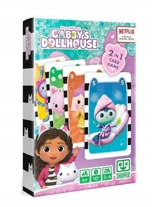 Zestaw kart 2 w 1 z motywami z popularnego serialu animowanego "Koci Domek Gabi" (Gabby’s Dollhouse). Umożliwia grę w dwie klasyczne gry karciane: