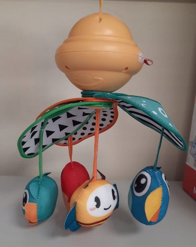 - Możliwość umieszczenia karuzelki na pałąku lub też przymocowanie jej za pomocą klamry do wózka, czy też bocznej ściany łóżeczka.