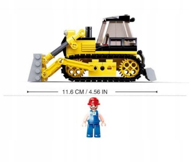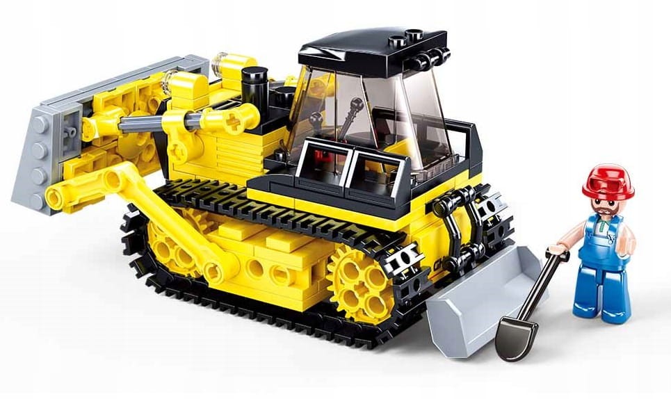 Zestaw POJAZD BUDOWLANY - SPYCHACZ składa się z 231 elementów w postaci klocków i figurek, jest on kompatybilny z innymi markami klocków