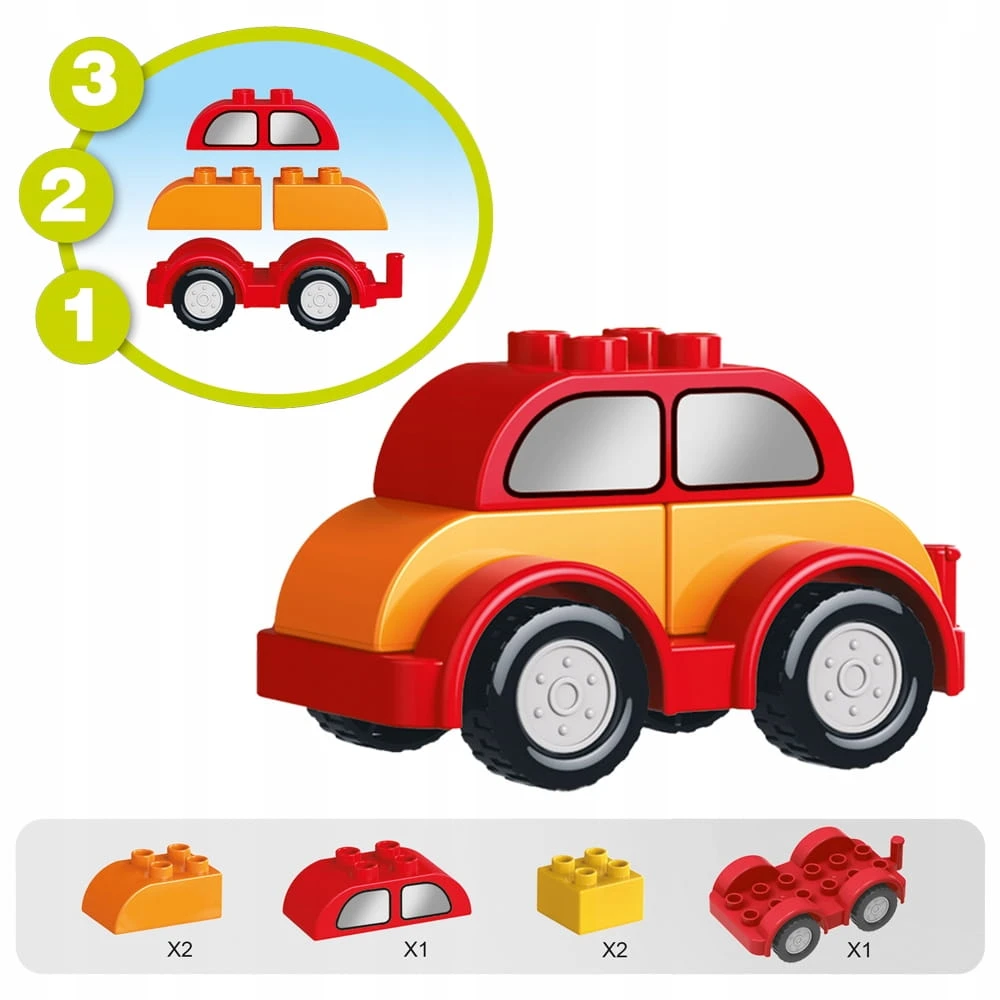 Proste łączenie klocków daje dziecku satysfakcję z budowania, a po ukończeniu konstrukcji autko staje się świetną zabawką do dalszej zabawy w ruch.