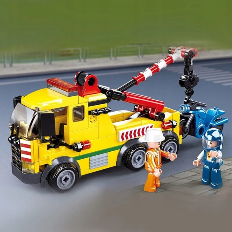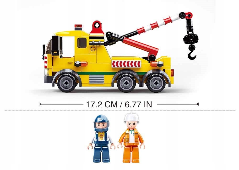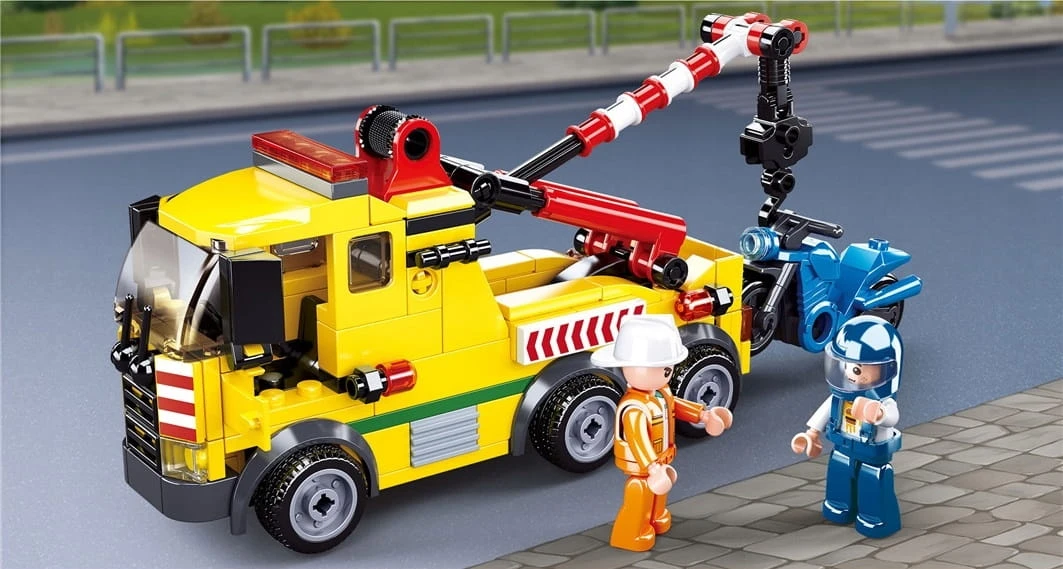 - W zestawie: 250 elementów: pojazd pomocy drogowej, motor oraz 2 figurki ludzików i wiele akcesoriów