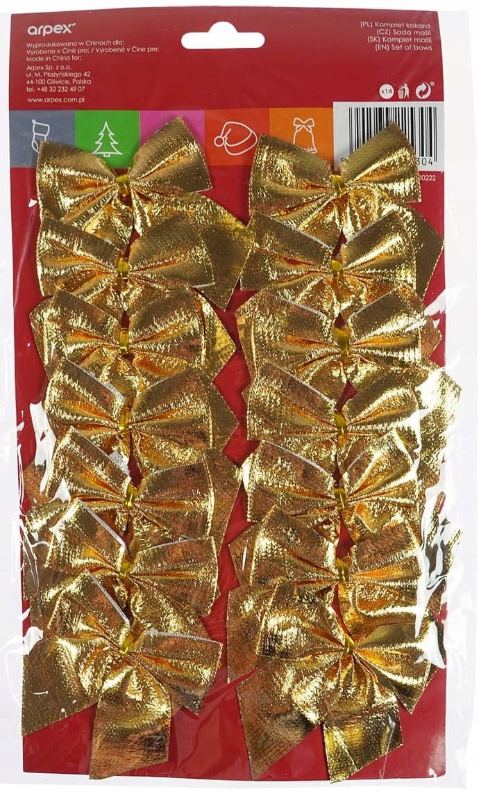 Ozdobne, złote kokardki idealne do dekoracji świątecznych, dodadzą elegancji i blasku Twoim świątecznym aranżacjom. Doskonałe do ozdabiania choinki, prezentów, wieńców oraz innych dekoracji domowych. Zestaw zawiera 14 sztuk kokardek, co umożliwia udekorowanie większej przestrzeni lub wykorzystanie ich do różnych projektów DIY.
