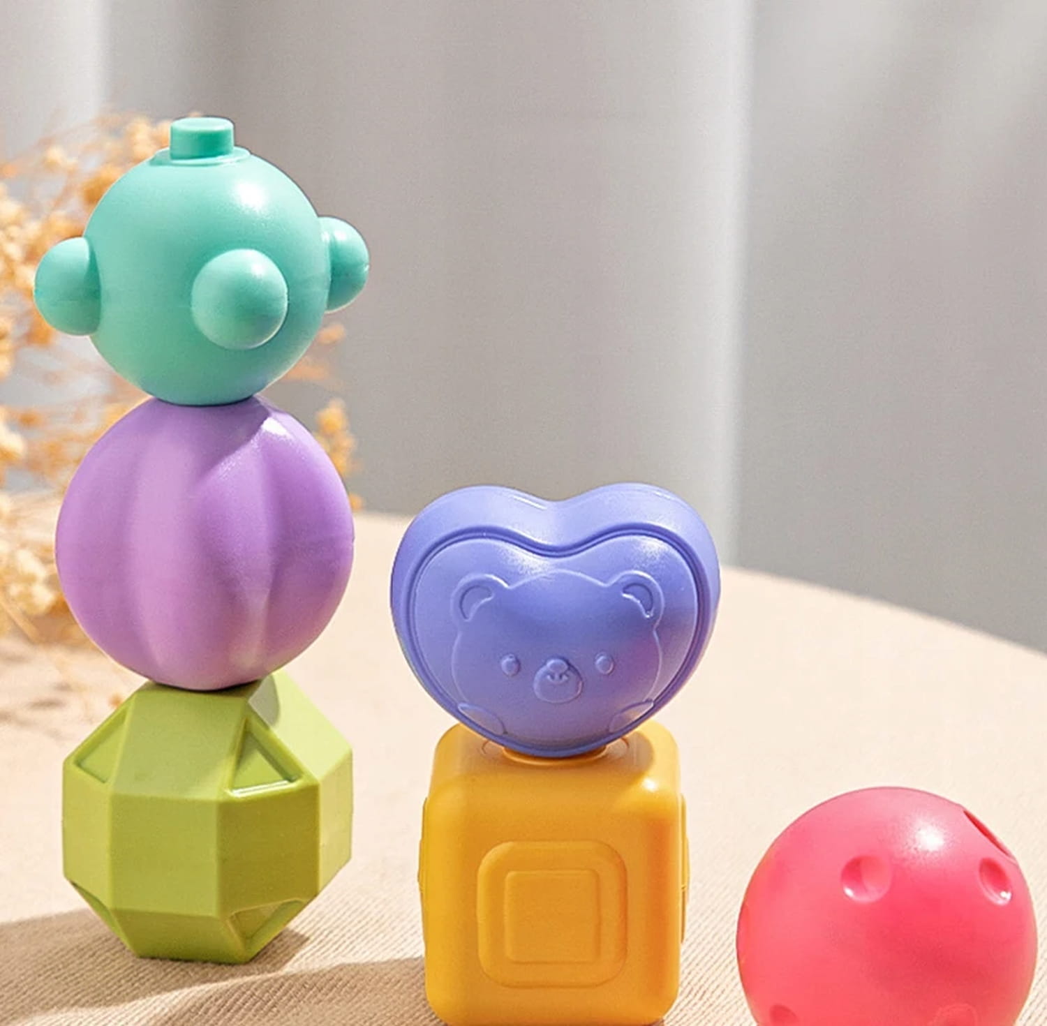 Ta zabawka, idealnie stymuluje zmysły i motorykę dzieci, rozwijając ich dotyk, wzrok, koordynację, motorykę rączek i paluszków, a także logiczne myślenie poprzez dopasowywanie figur.