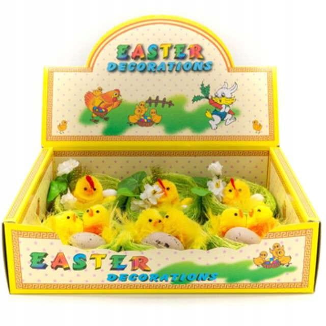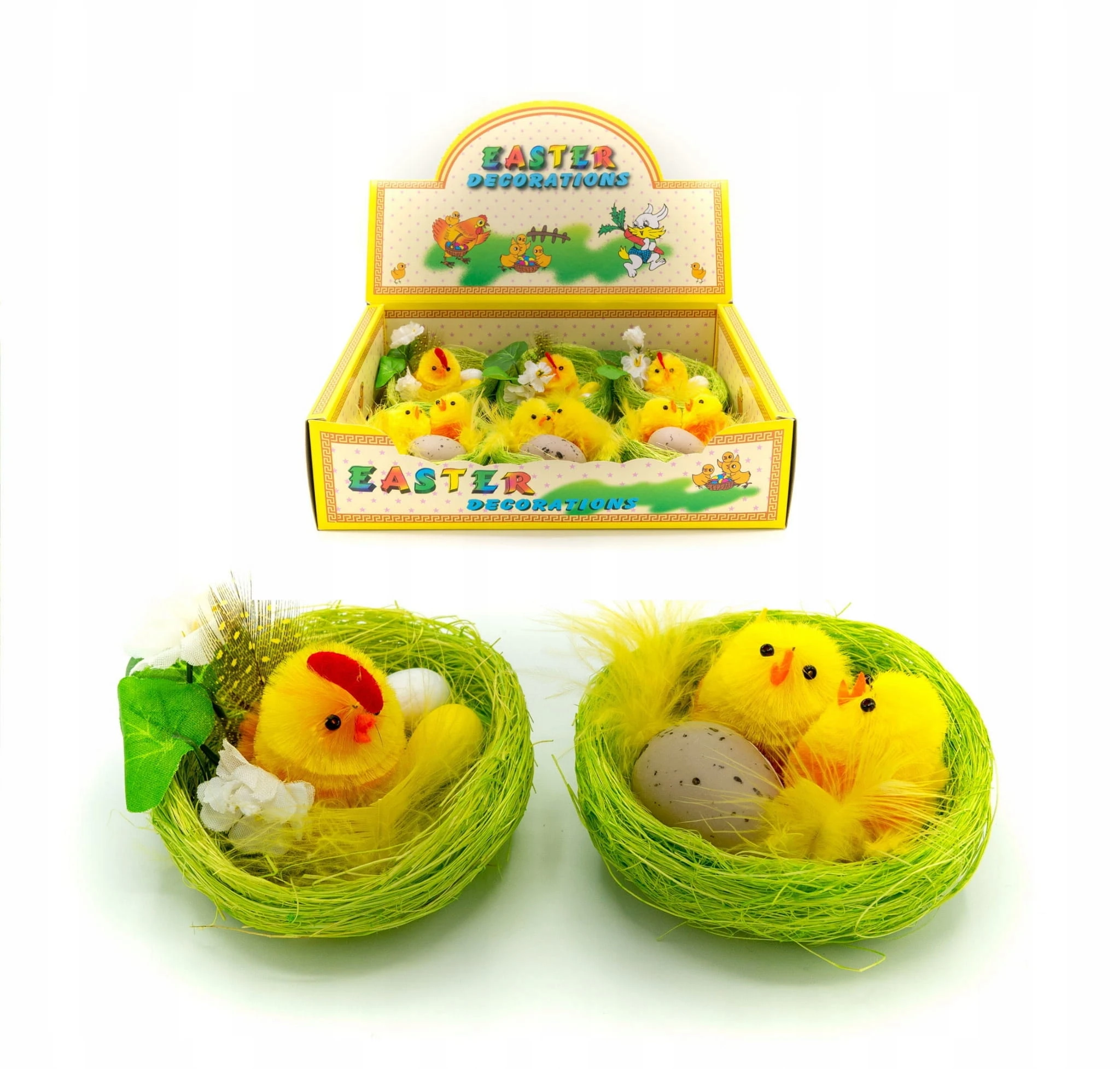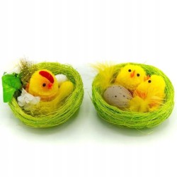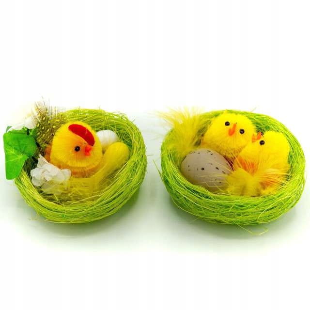 Zestaw dekoracyjny w postaci pierzastych, żółtych kurczaków i kurek siedzących w gniazdku, to idealny dodatek do wszelkich świątecznych projektów typu scrapbooking, home decor itp. Stanowią również świetną bazę do tworzenia wielkanocnych i wiosennych dekoracji. Znakomicie nadają się do wszelkiego rodzaju dziecięcej aktywności twórczej. Gotowe dekoracyjne gniazdko to ciekawa i prosta ozdoba wielkanocna którą przystroisz dom na święta. Będzie ładnie się prezentować na świątecznym stole, w oknie na parapecie, czy w koszyku ze święconką.