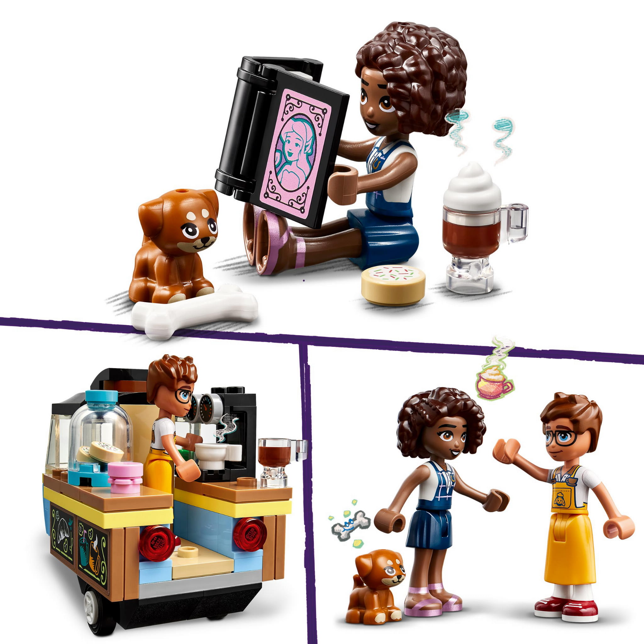 Zestaw LEGO Friends Mobilna piekarnia - zawiera dwie minilaleczki, figurkę psa, wózek i mnóstwo zabawkowych akcesoriów do piekarni dla dzieci w wieku od sześciu lat.