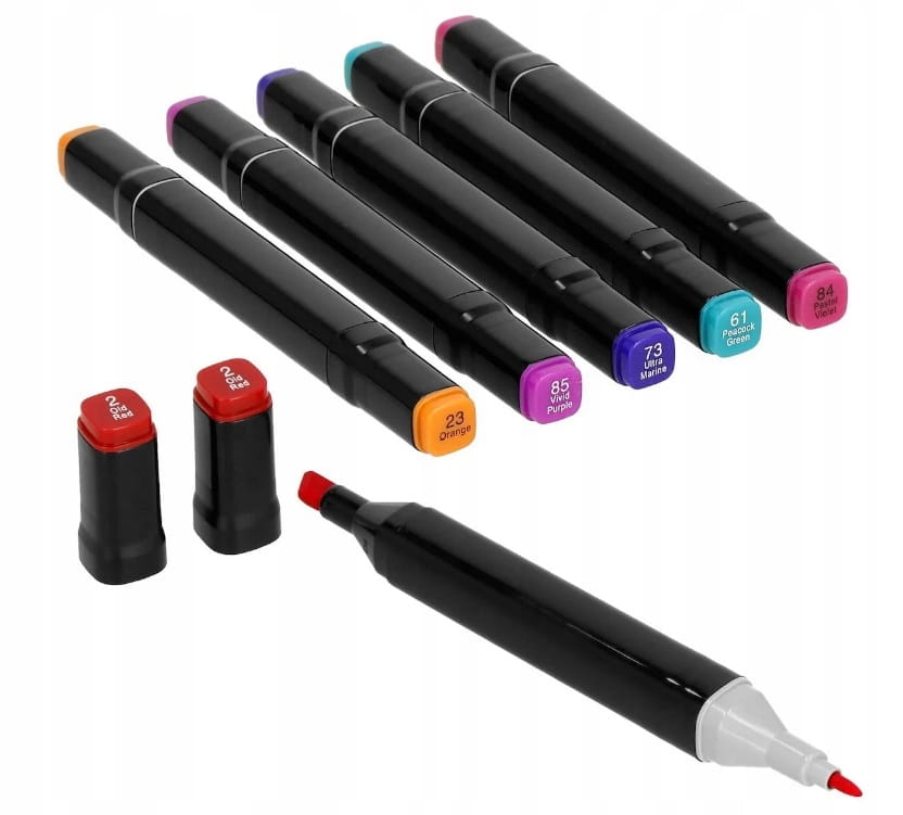 Odkryj zestaw 80 markerów w intensywnych, różnorodnych kolorach! To idealny wybór zarówno dla początkujących artystów, jak i doświadczonych rysowników, którzy cenią sobie wysoką jakość narzędzi.