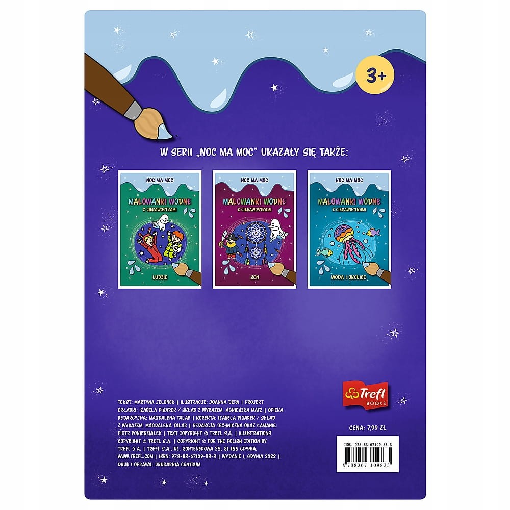 TREFL BOOKS - Wodna kolorowanka - Noc ma moc - Malowanki wodne z ciekawostkami - Zwierzęta - 9833 - informacje dodatkowe: