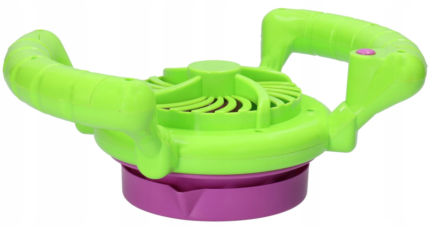 Ten generator baniek posiada aż 12 otworów, przez które non stop, z imponującą szybkością wylatują wprawiające z zachwyt bańki.