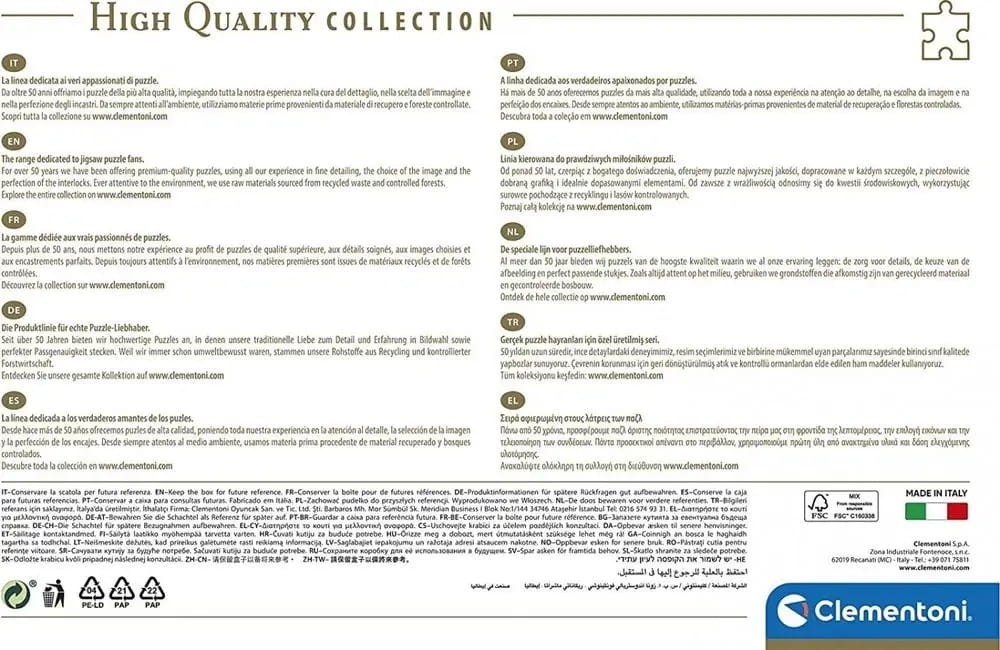Gruba tektura puzzlowa i specjalna technologia druku zapewniają produkt wysokiej klasy.