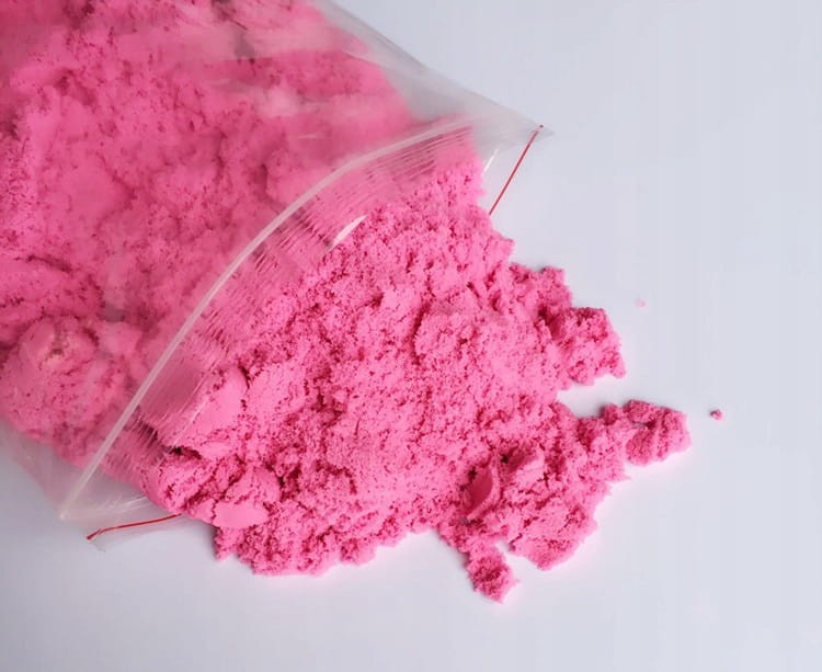 ✅ Piasek kinetyczny jest nietoksyczny, bezwonny i łatwy do zebrania. Ulepienie niewielkiej kulki pozwoli złączyć wszystkie drobinki w jedną całość.
