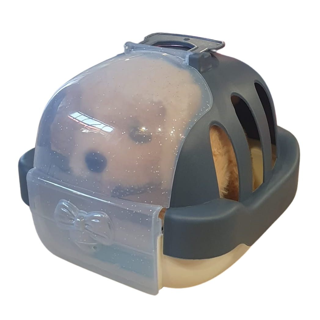 ✅Piesek został umieszczony w transporterze z rączką.