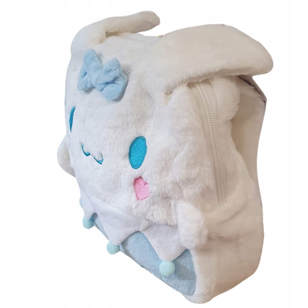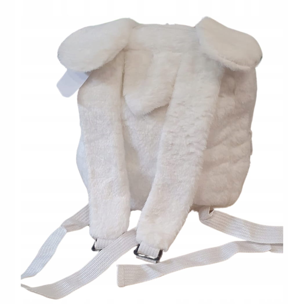 Uroczy, pluszowy plecak przedszkolny w kolorze biały. Idealny dla najmłodszych, wykonany z miękkiego materiału, przyjemnego w dotyku.