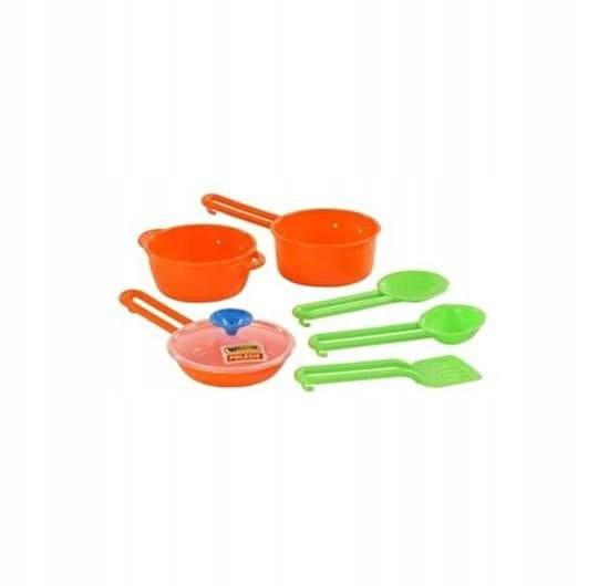 Zestaw naczyń Polesie idealnie uzupełni dziecięcy kącik kuchenny. W skład zestawu wchodzi 6 podstawowych elementów wyposażenia kuchni: garnek, rondel z pokrywką, patelnia, pokrywka, chochla, łopakta i łyżka cedzakowa. Maluchy mają okazję wcielić się w rolę dorosłych podczas przygotowywania posiłków. Mali kucharze spędzą wiele godzin na wesołej zabawie podczas przygotowywania posiłków dla przyjaciół, maskotek i lalek.