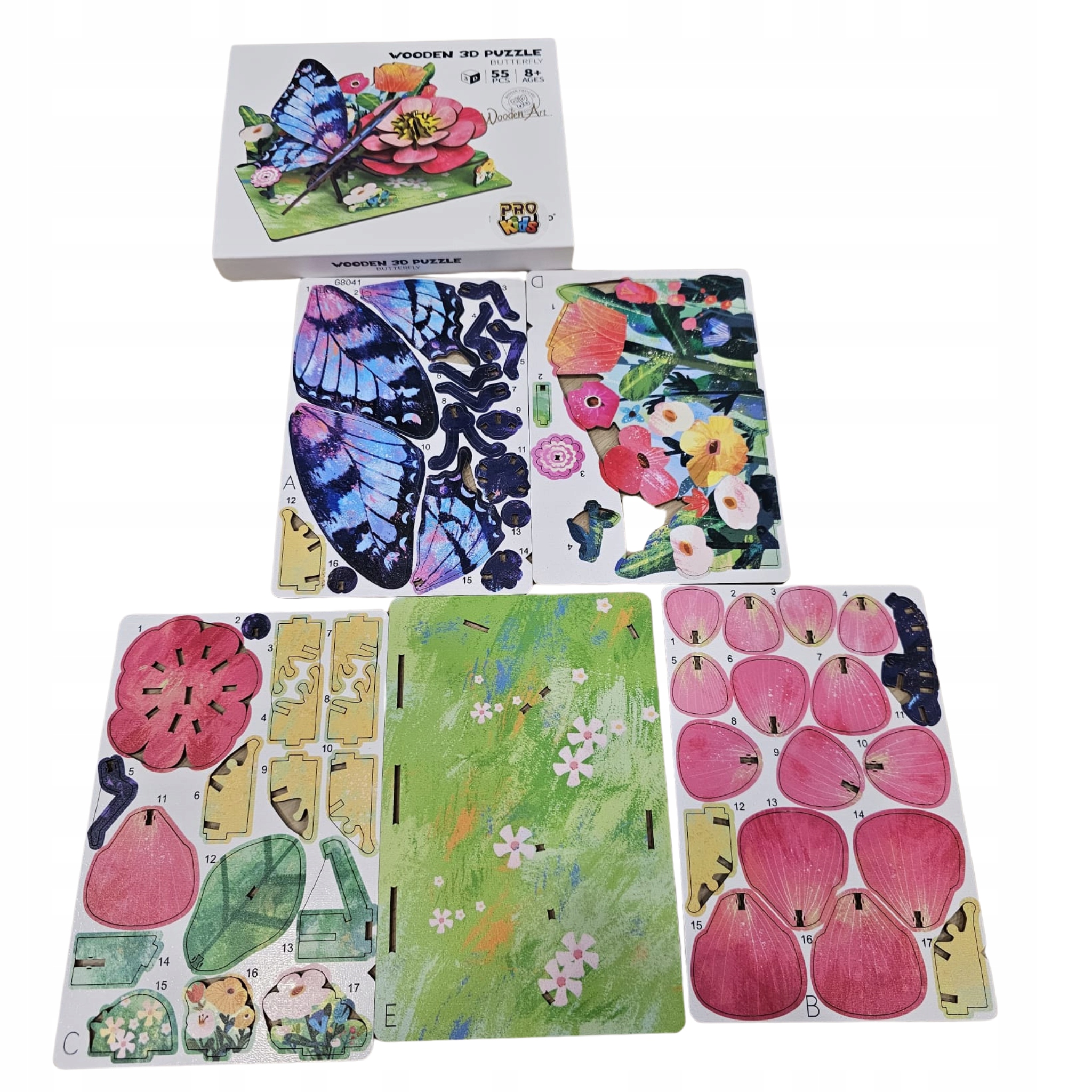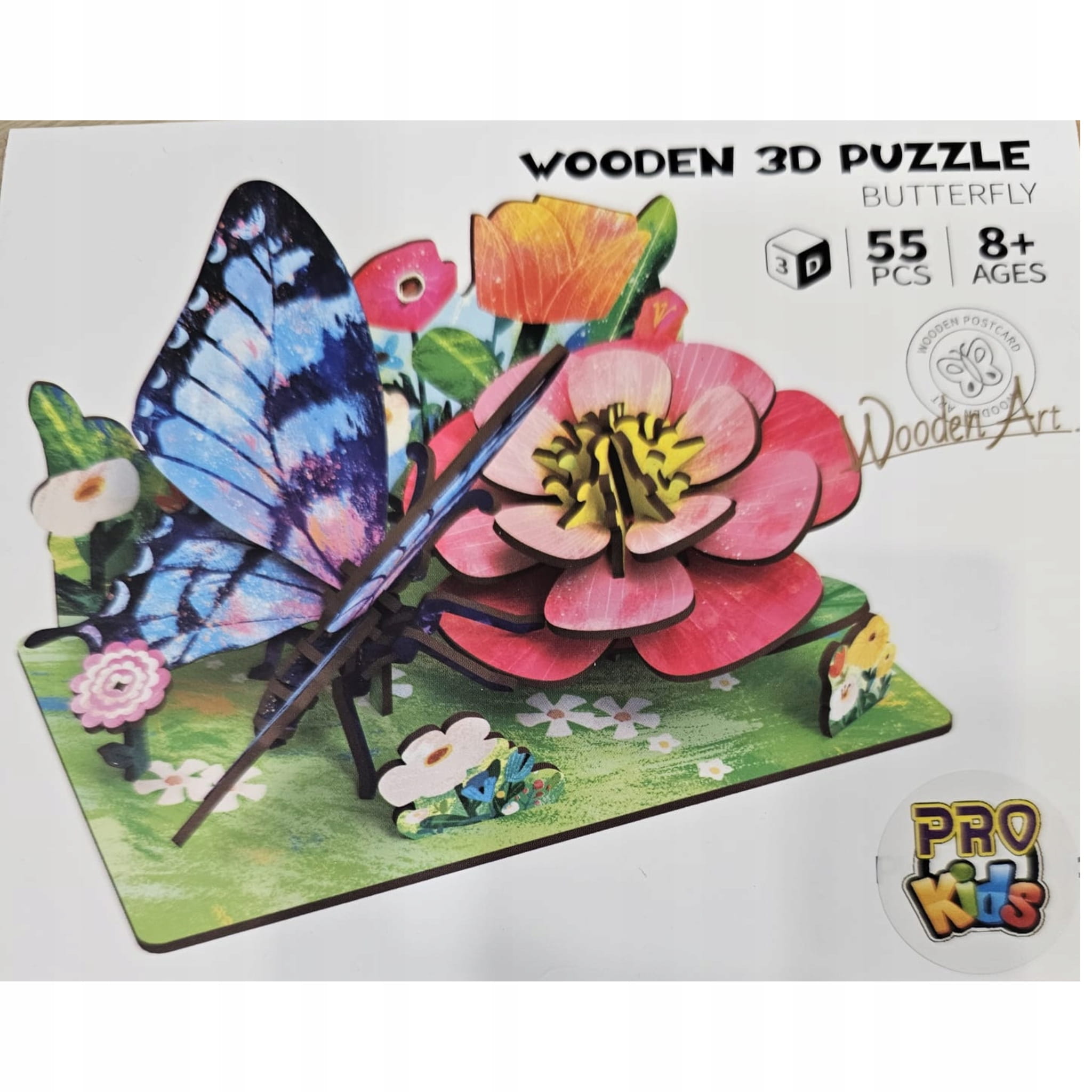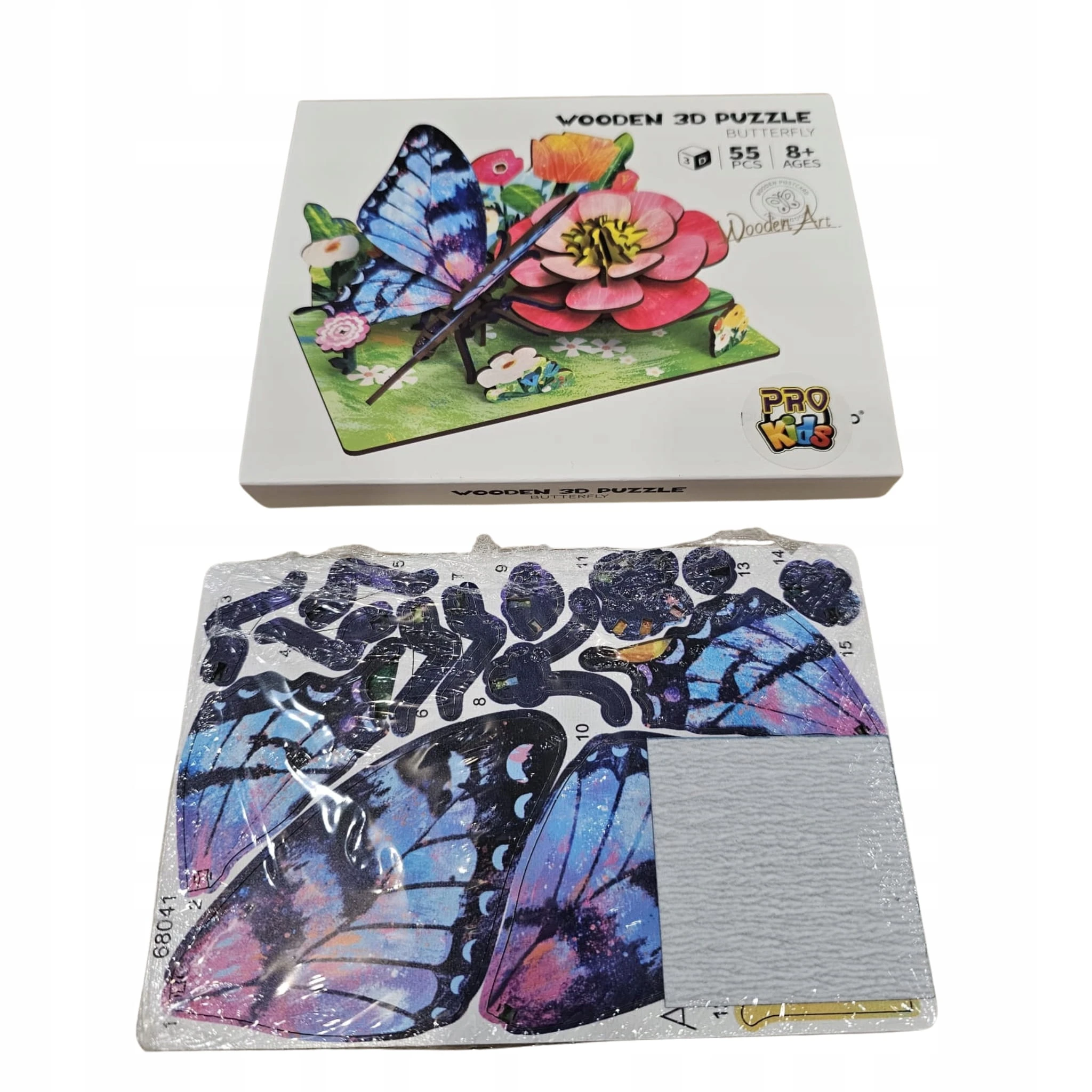 Puzzle 3D Drewniane Motyl na Kwiatach Ukladanka Wooden 55el Wiek 8+
