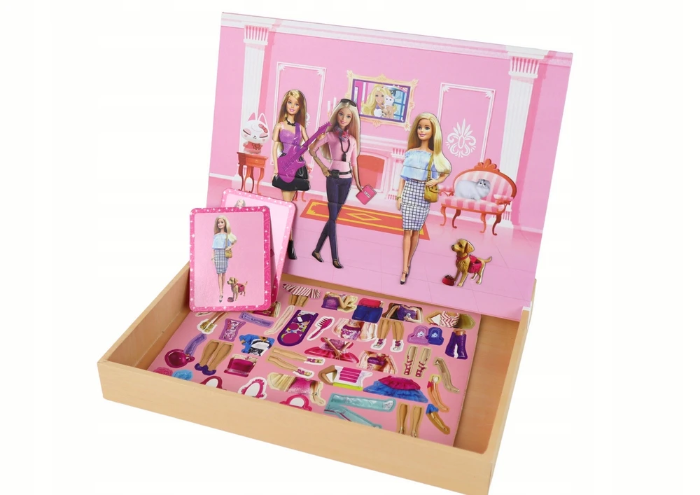 Zestaw Edukacyjnych Puzzli Magnetycznych z motywem lalek od LEAN Toys to wspaniała propozycja, która rozwija wyobraźnię i zmysł estetyczny dziecka. Zabawa polega na układaniu kolorowych magnesów na magnetycznej tablicy, co pozwala na tworzenie niezliczonych kombinacji strojów, dodatków i fryzur. Całość zamknięta jest w estetycznym, sztywnym pudełku, które po otwarciu pełni funkcję tablicy do tworzenia obrazków oraz praktycznego schowka na wszystkie elementy.