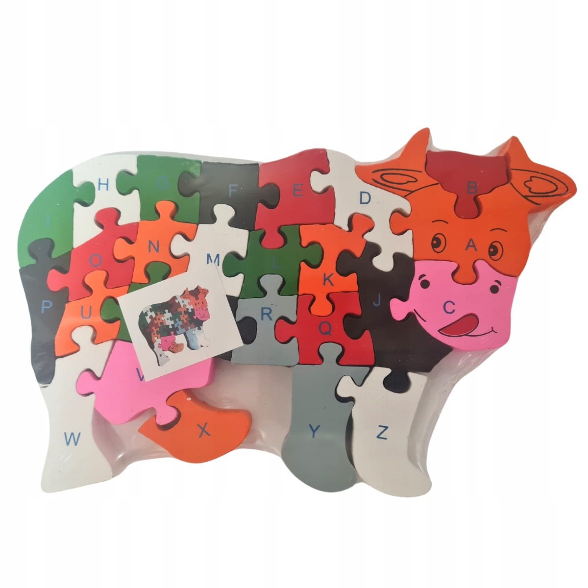 Drewniane puzzle edukacyjne MIX – litery, cyfry, zwierzątka