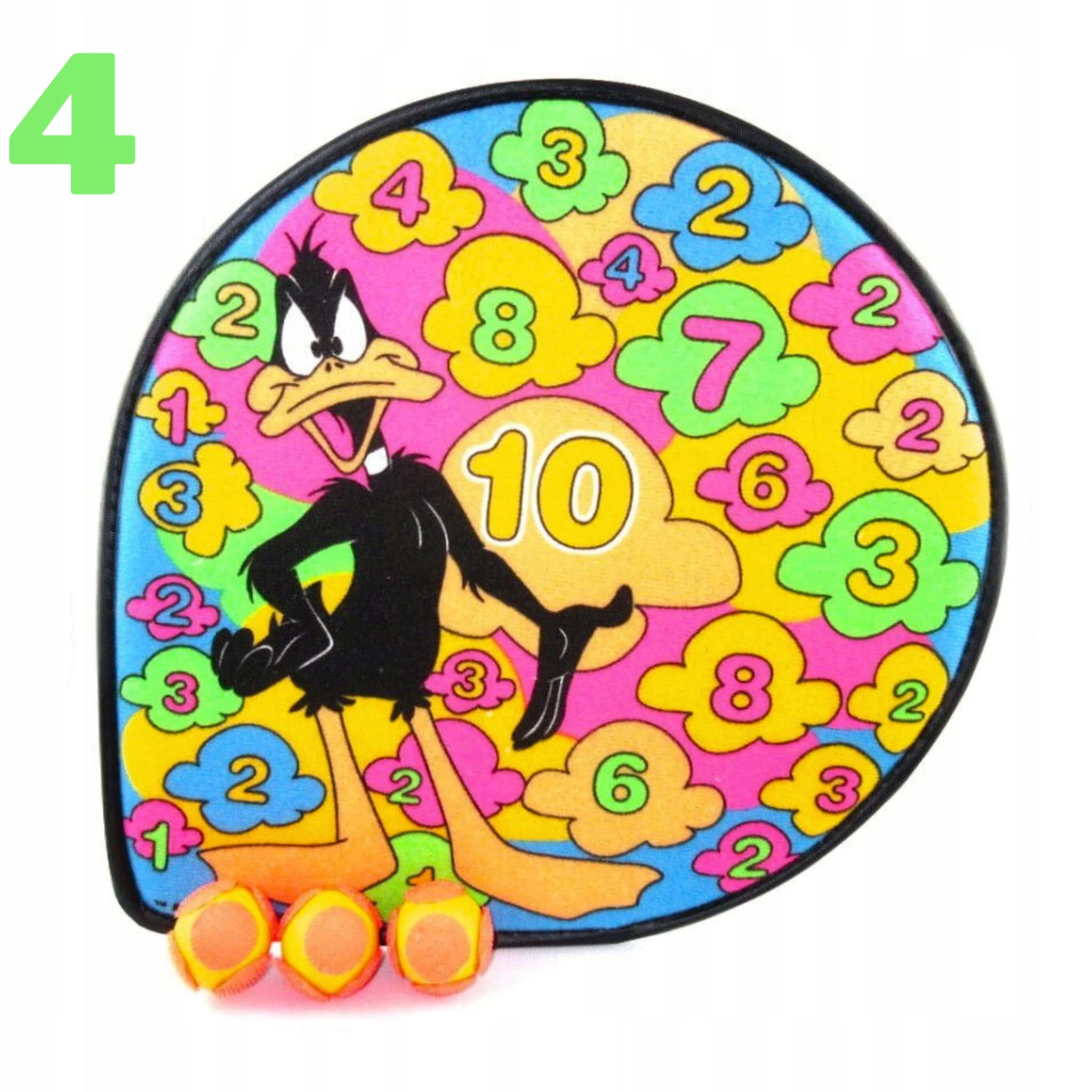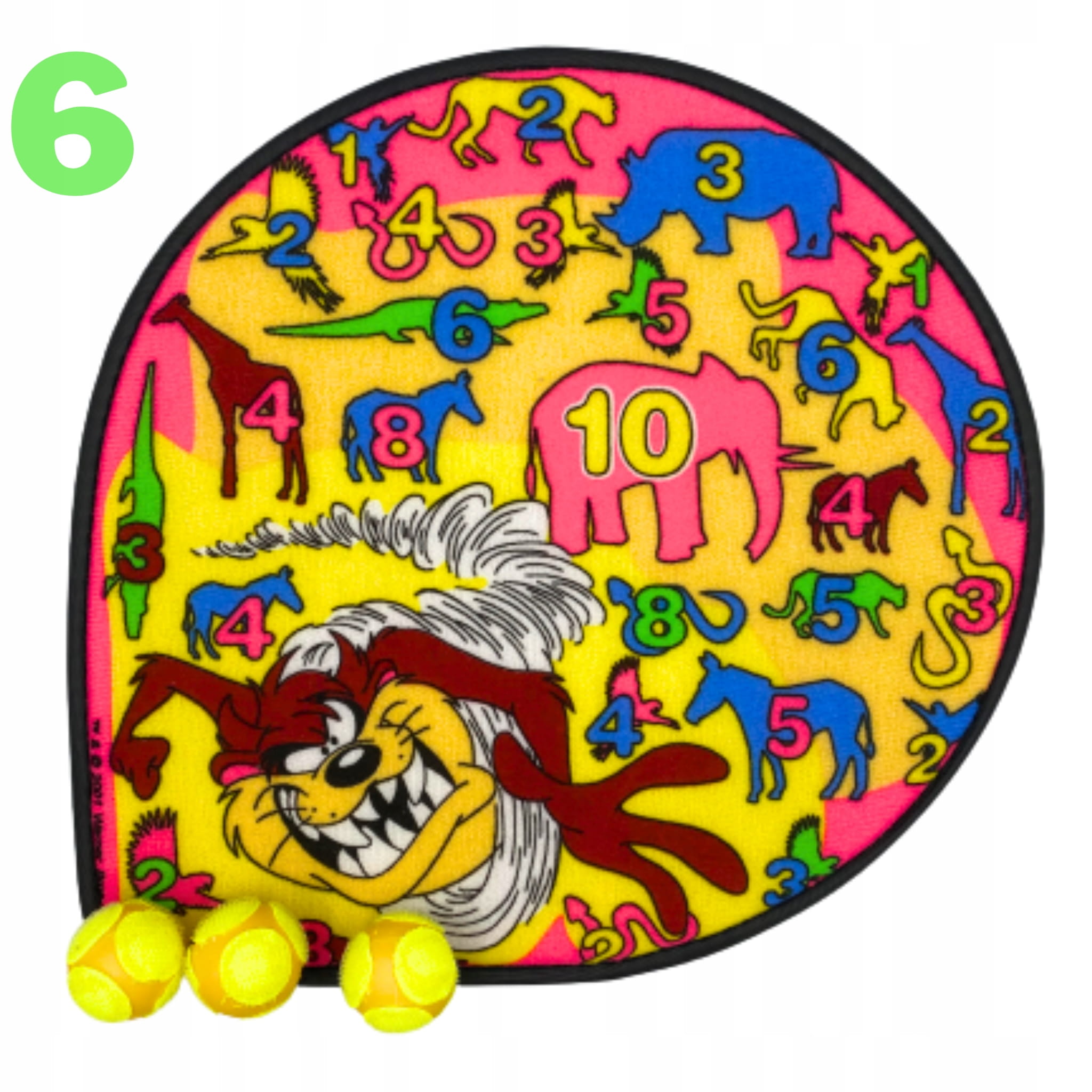 Żywe kolory zachęcają dziecko do zabawy, ale również ułatwiają celowanie w wybrane punkty. Piłeczki są dokładnie widziane podczas rzucania oraz gdy przykleją się do tarczy. Rzepy są mocne i bez problemu przyklejają się do tarczy. Tarcz wykonana jest z miękkich materiałów co czyni ją bezpieczniejszą.