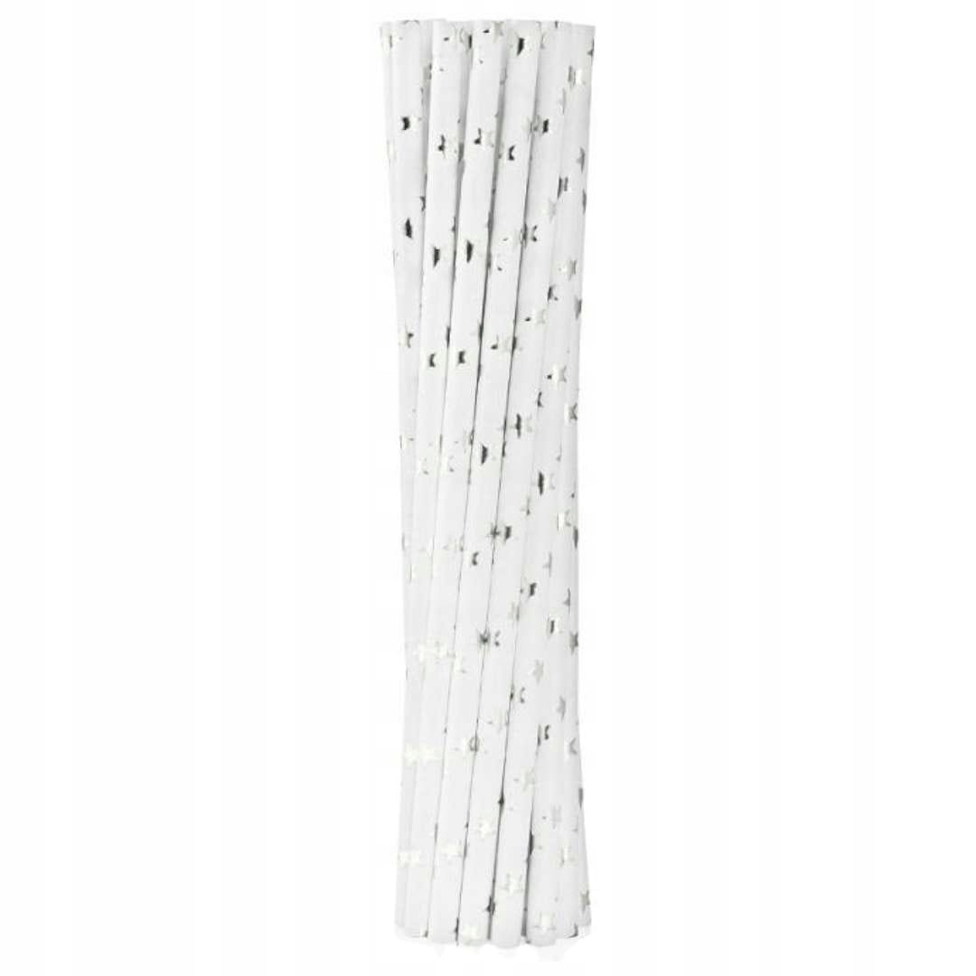 Słomki papierowe "Błyszczące Gwiazdki", biały, Godan, 19,7 cm, 12 szt
