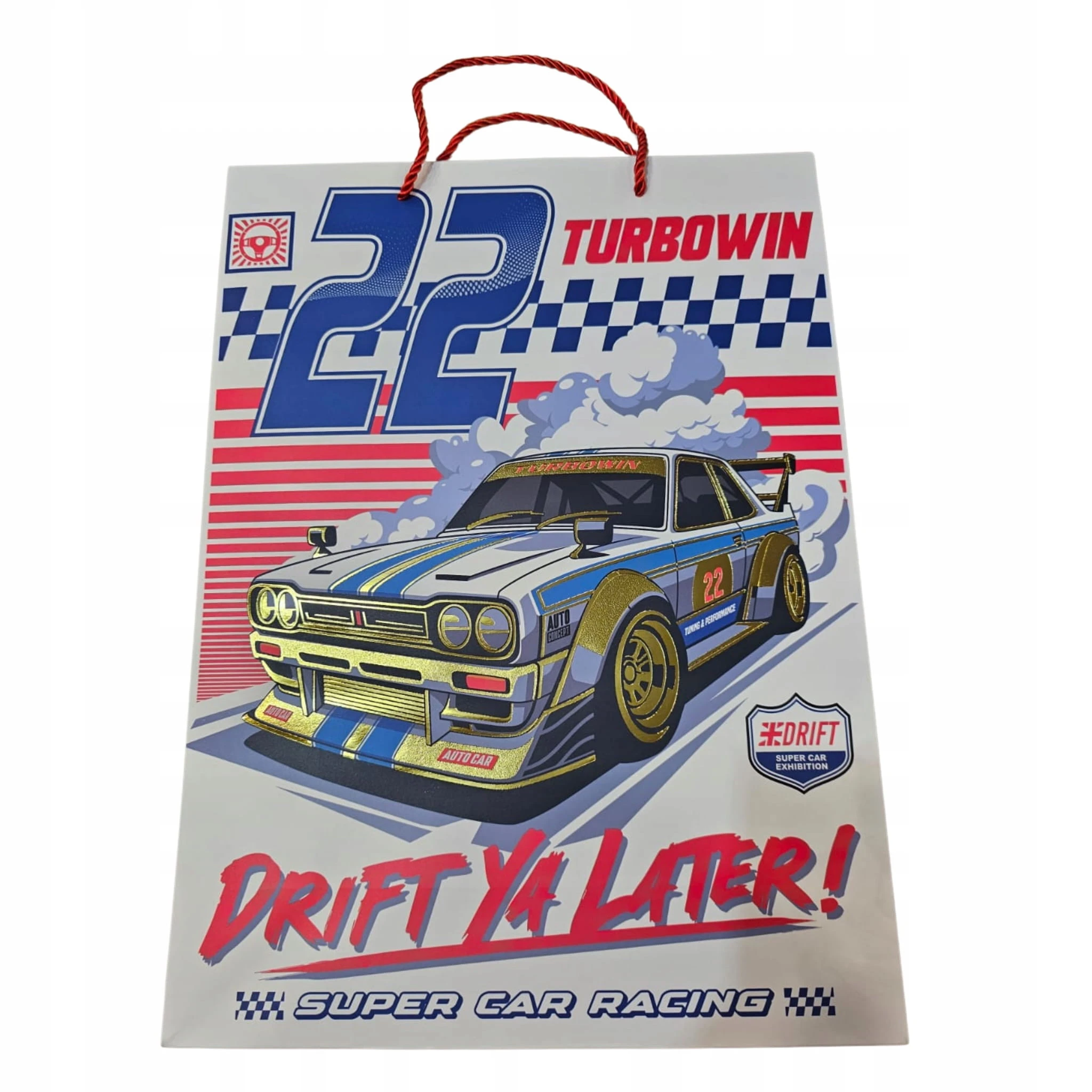 Torba jest wykonana z grubego, wytrzymałego papieru i posiada mocne uchwyty (zwykle sznurkowe), co zapewnia jej trwałość i estetyczny wygląd.