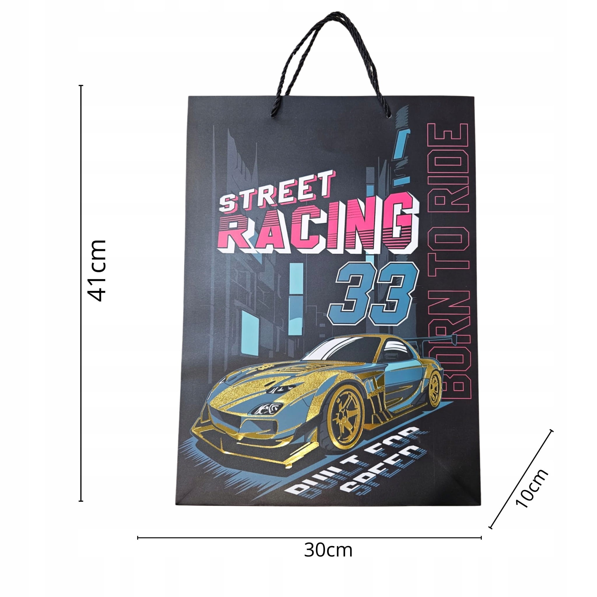Torba prezentowa papierowa o uniwersalnych wymiarach 30 cm szerokości, 41,5 cm wysokości i 12 cm głębokości (kod JP-6614A) to idealne opakowanie na średnie i większe prezenty. Jest szczególnie dobra do pakowania książek, kalendarzy, płyt, zestawów kosmetycznych i T-shirtów.