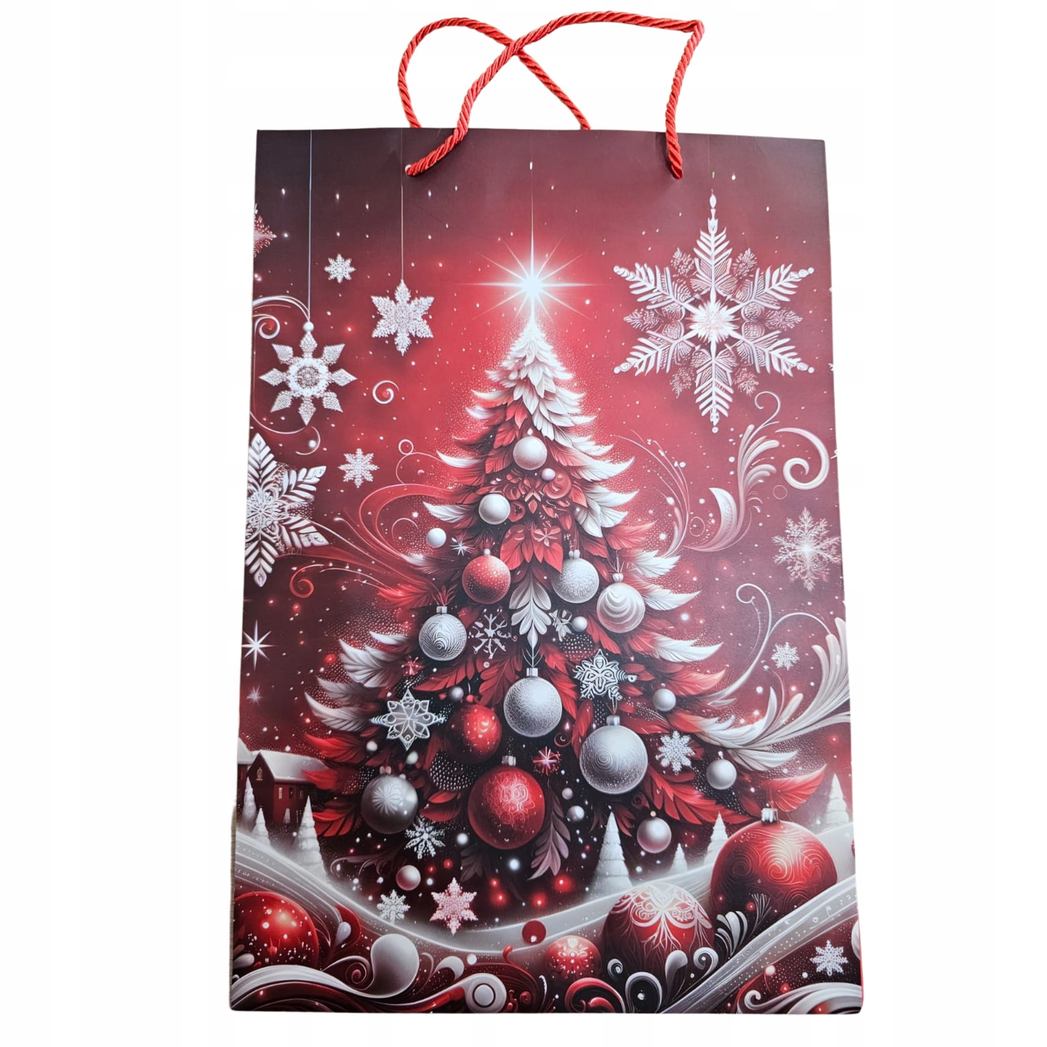 Torebka prezentowa L/XL Boże Narodzenie od firmy Ju-Piter to idealny wybór do pakowania naprawdę dużych prezentów. Dzięki wymiarom 54 cm wysokości, 36 cm szerokości i wyjątkowo głębokiemu dnu (30 cm), z łatwością pomieści duże zestawy, gry planszowe czy nieporęczne upominki.
