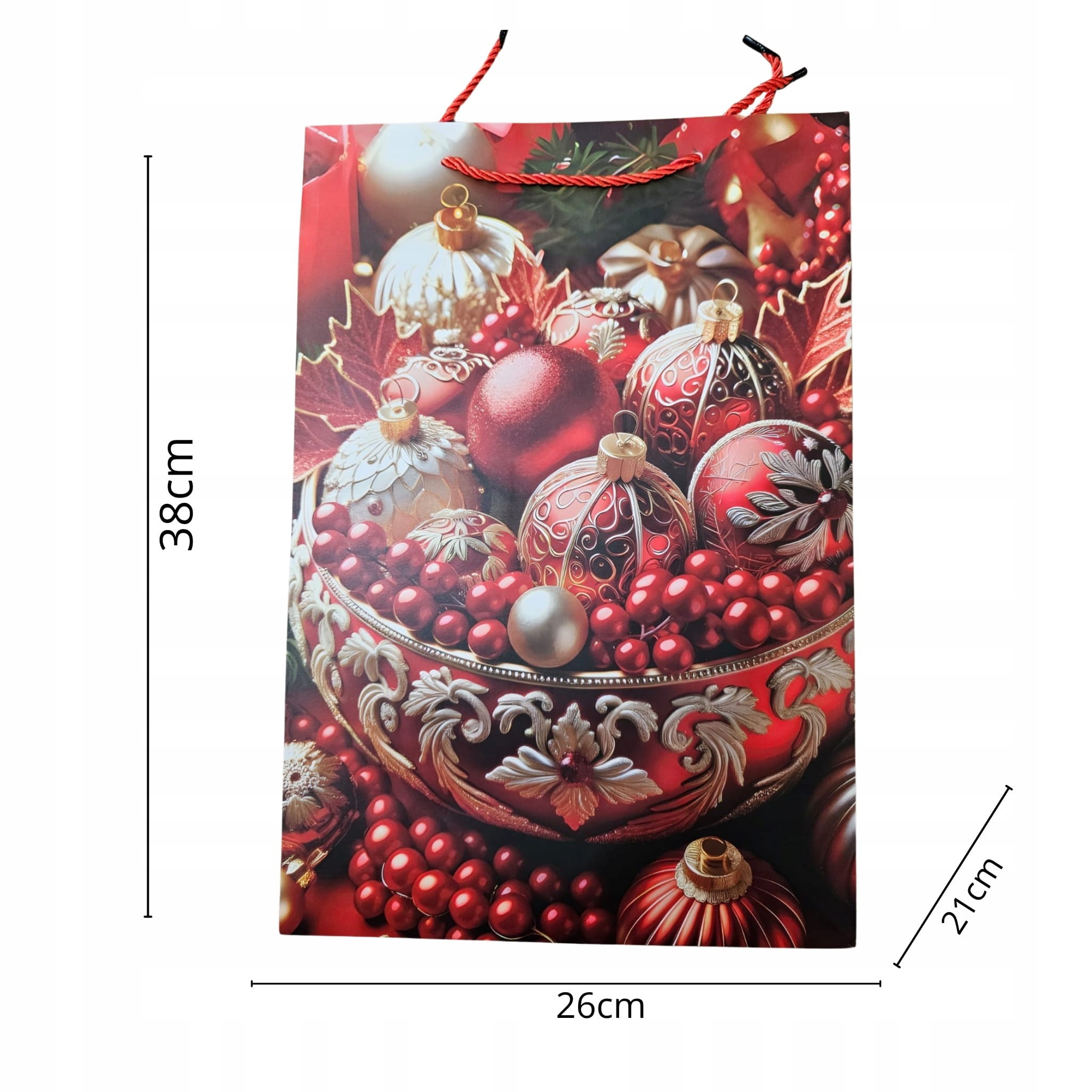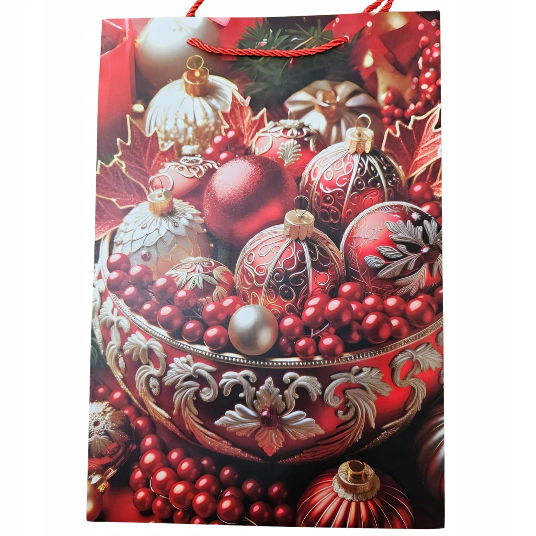 Torebka prezentowa M Boże Narodzenie z oferty firmy Ju-Piter to idealny sposób na eleganckie zapakowanie świątecznych upominków. Szerokie dno sprawia, że jest szczególnie praktyczna do umieszczania prezentów o niestandardowym, szerszym kształcie lub małych pudełek.