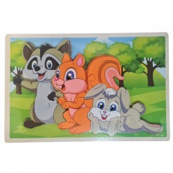 Drewniana układanka przedstawiająca zwierzątka.