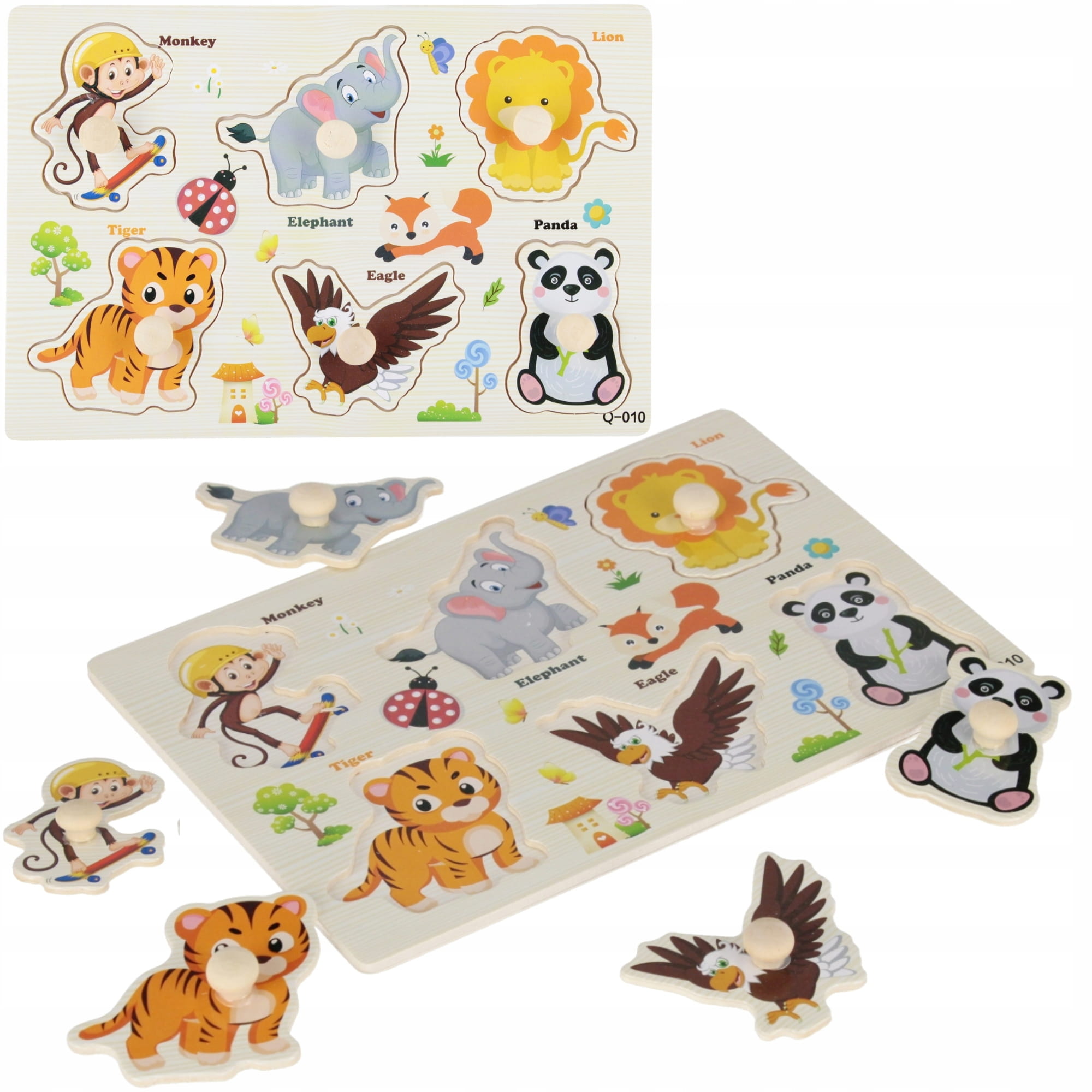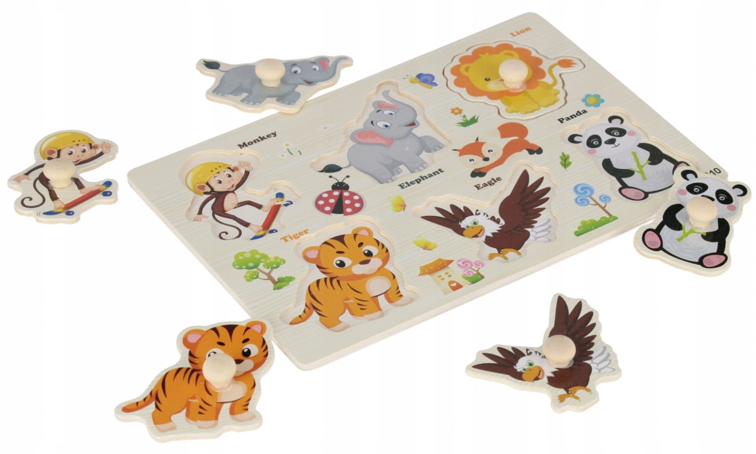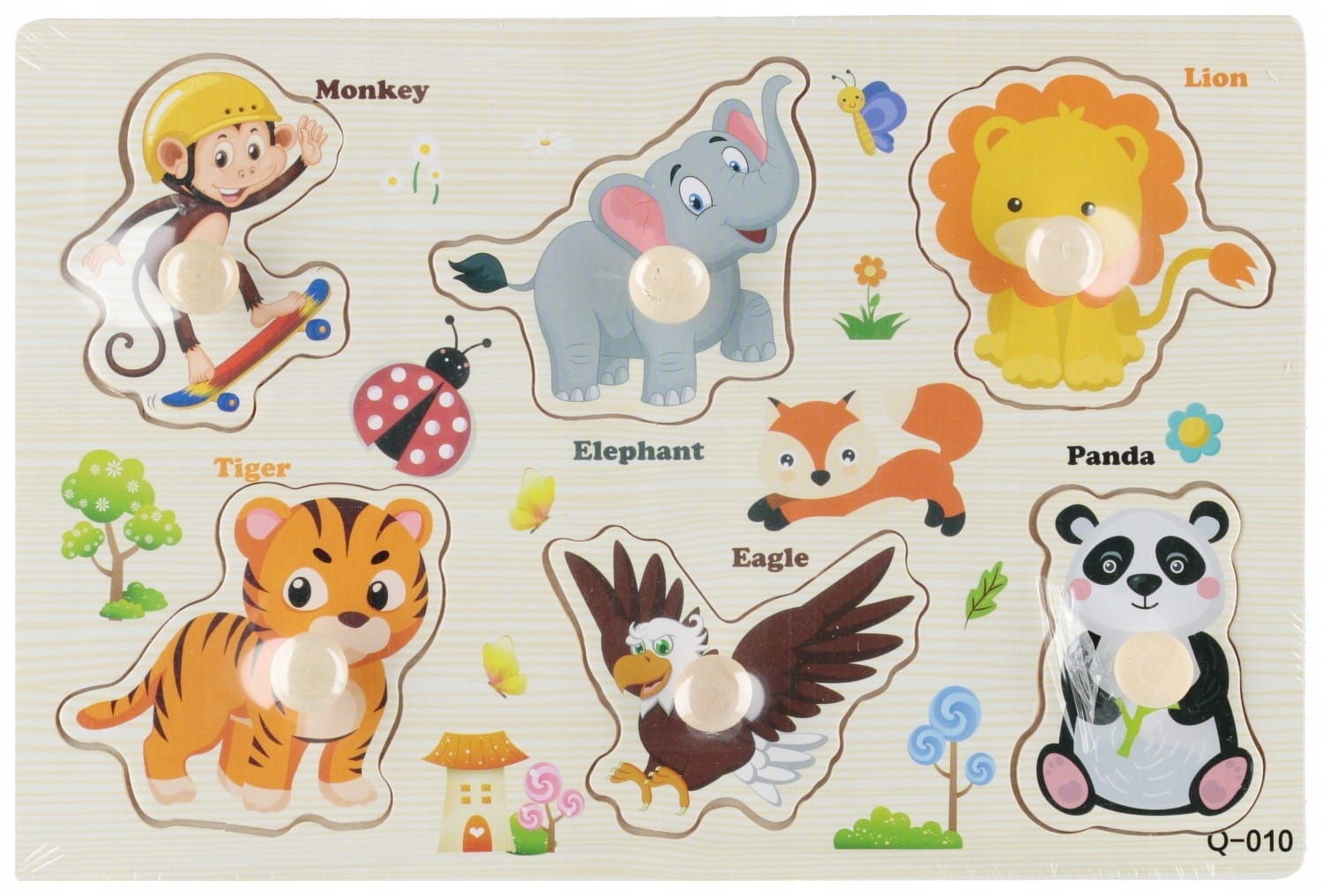 Układanka Drewniana Zoo Safari z Uchwytem Puzzle Edukacyjne dla Dzieci 18m+