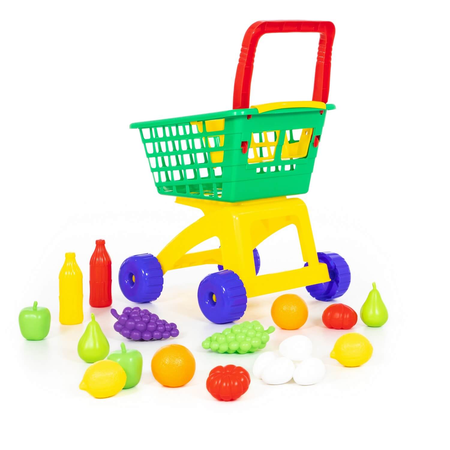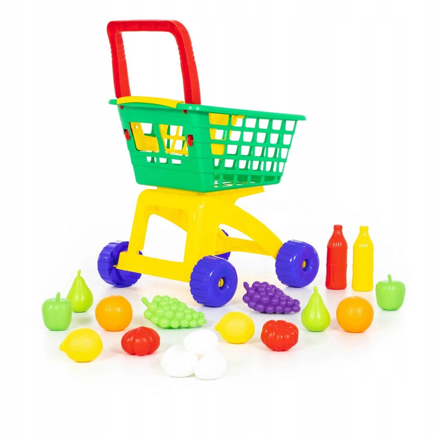 Dołączone do wózka owoce, warzywa i jajka urozmaicą zabawę i zastąpią prawdziwe produkty spożywcze.