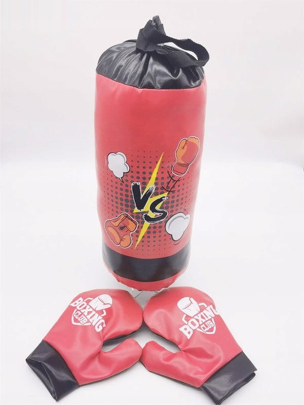 Fantastyczny zestaw bokserski przeznaczony dla najmłodszych dzieci. Zestaw składa się z wytrzymałego worka treningowego i dwóch rękawic bokserskich. Wykonany jest z wysokiej jakości materiałów w czerwono-czarnej kolorystyce z ciekawymi motywami graficznymi. Zabawa z wykorzystaniem zestawu bokserskiego doskonale rozładuje dziecięcą energię oraz będzie ciekawym pomysłem na zajęcia ruchowe, który zachęci dzieci do podjęcia aktywności fizycznej. Ponadto pozytywnie wpłynie na prawidłowy rozwój dziecka przez doskonalenie zdolności motorycznych, ćwiczenie koncentracji oraz naukę samoobrony już od najmłodszych lat. To idealny pomysł na prezent dla dziecka, bo dzięki dobrej zabawie zaszczepisz w nim zamiłowanie do sportu i aktywnego wypoczynku. Worek można zawiesić na haczyku. Wszystkie elementy zestawu zostały umieszczone w siateczce.